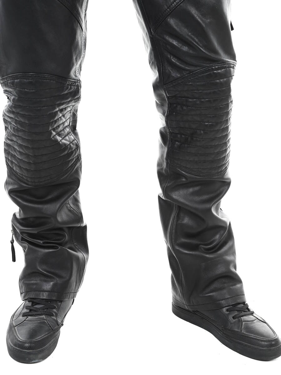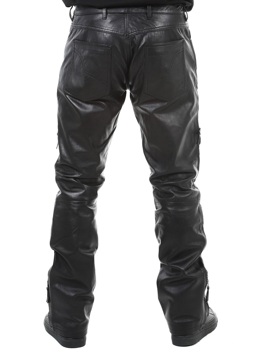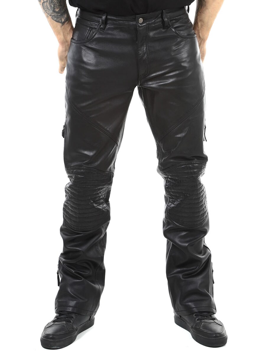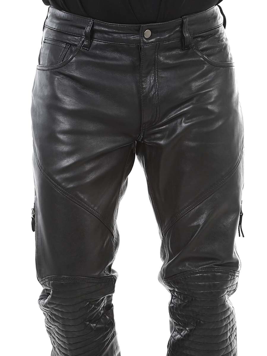 Stilfulde bukser i ægte fåreskind, som giver dem en blød og smidig fornemmelse, samtidig med at de bevarer et slidstærkt og langtidsholdbar kvalitet. De har fem klassiske lommer og lynlåse for enden af benene, hvilket giver en justerbar pasform. Detaljeret med lynlåse og polstrede knæ. Designet til motorcykelentusiaster og dem, der ønsker et edgy look!