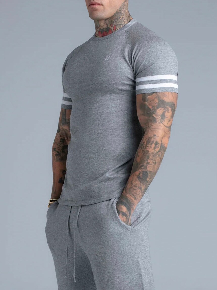 Ensfarvet T‑shirt med logo på brystet og striber på ærmerne. T‑shirten har klassisk rund hals og korte ærmer, der giver et tidløst udtryk. Fremstillet i blødt og elastisk materiale.
