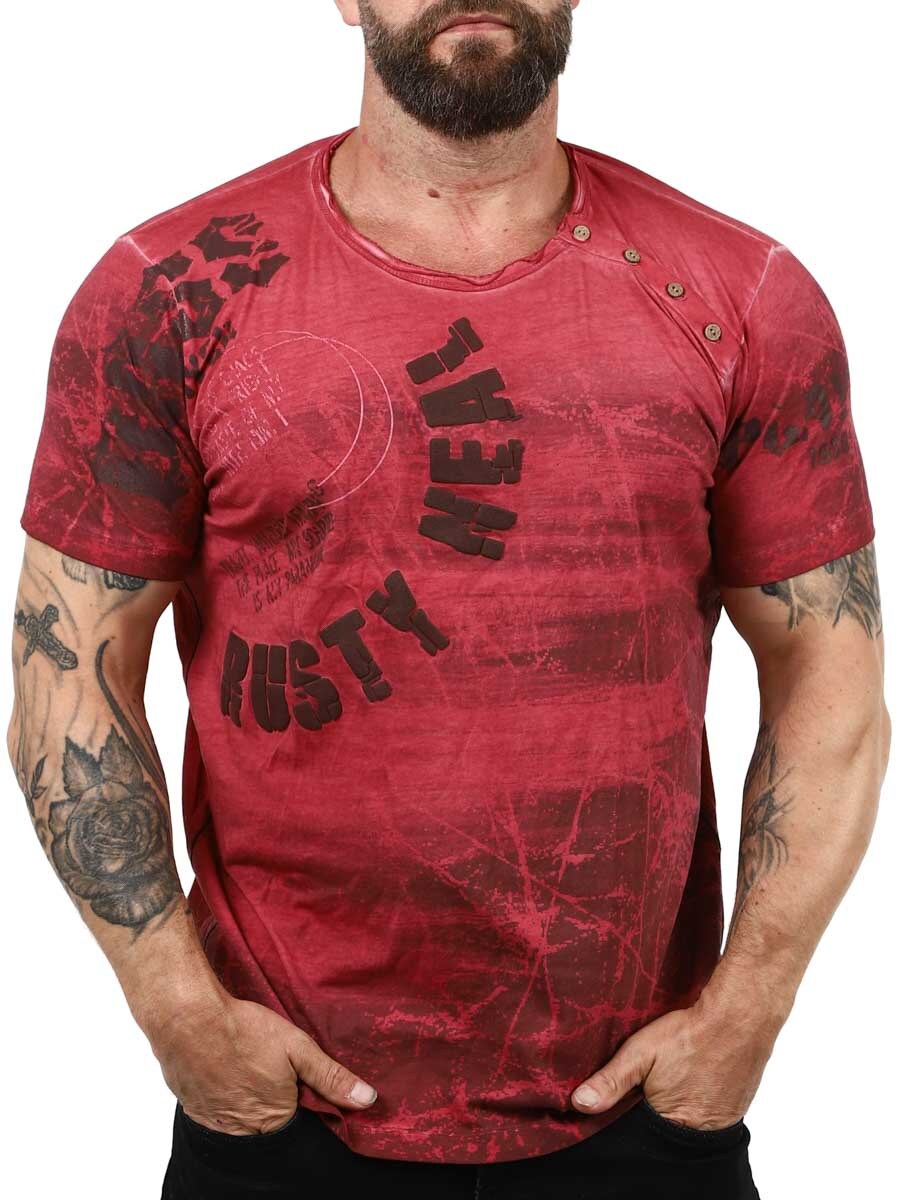 Unik t-shirt med flotte detaljer som 3D-print og mønster. Knapperne ved den afrundede hals kan knappes op og dermed give en større halsudskæring. Trykt motiv på forsiden, findes flere farvevariationer!