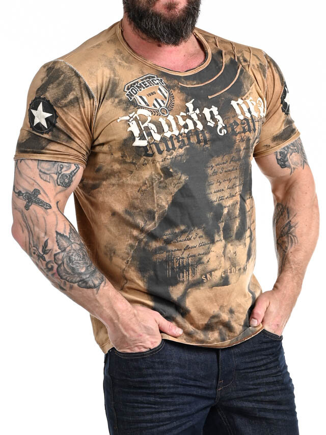 Skøn t-shirt i et forvasket design med grove sømme og tryk på forsiden. Lige model med en afrundet hals og en diskret lap med logo i taljen forneden.
