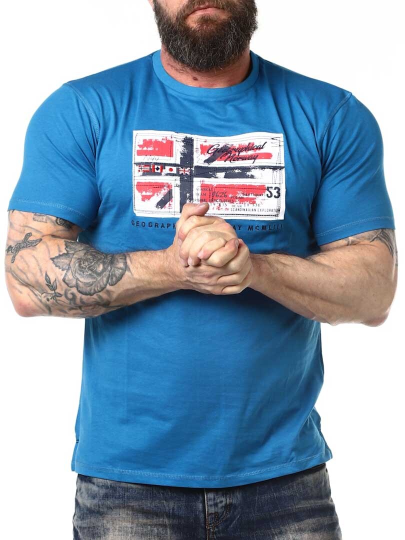 T-shirt med et stort mærke, i stof, fortil og et synligt logo. Afrundet åbning i halsen og en kortere slids nederst i siderne. Fremstillet af 100% blød bomuld.