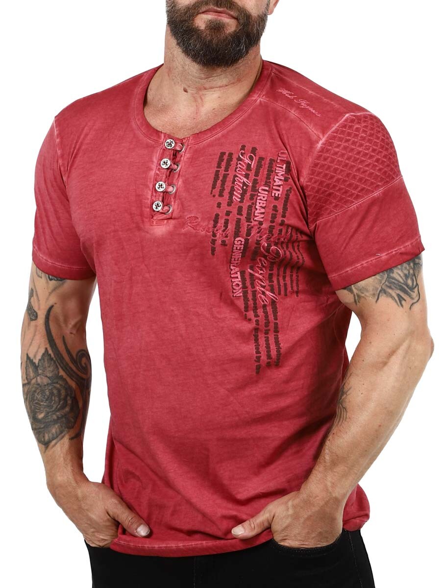 Skøn t.shirt i blødt bomuldsmateriale med stretch i. Detaljeret med knapper ved halsen, teksttryk, kontraststof på skuldrene og logoet på en metalpatch i taljen forneden. Glem ikke, at den findes i flere farver!