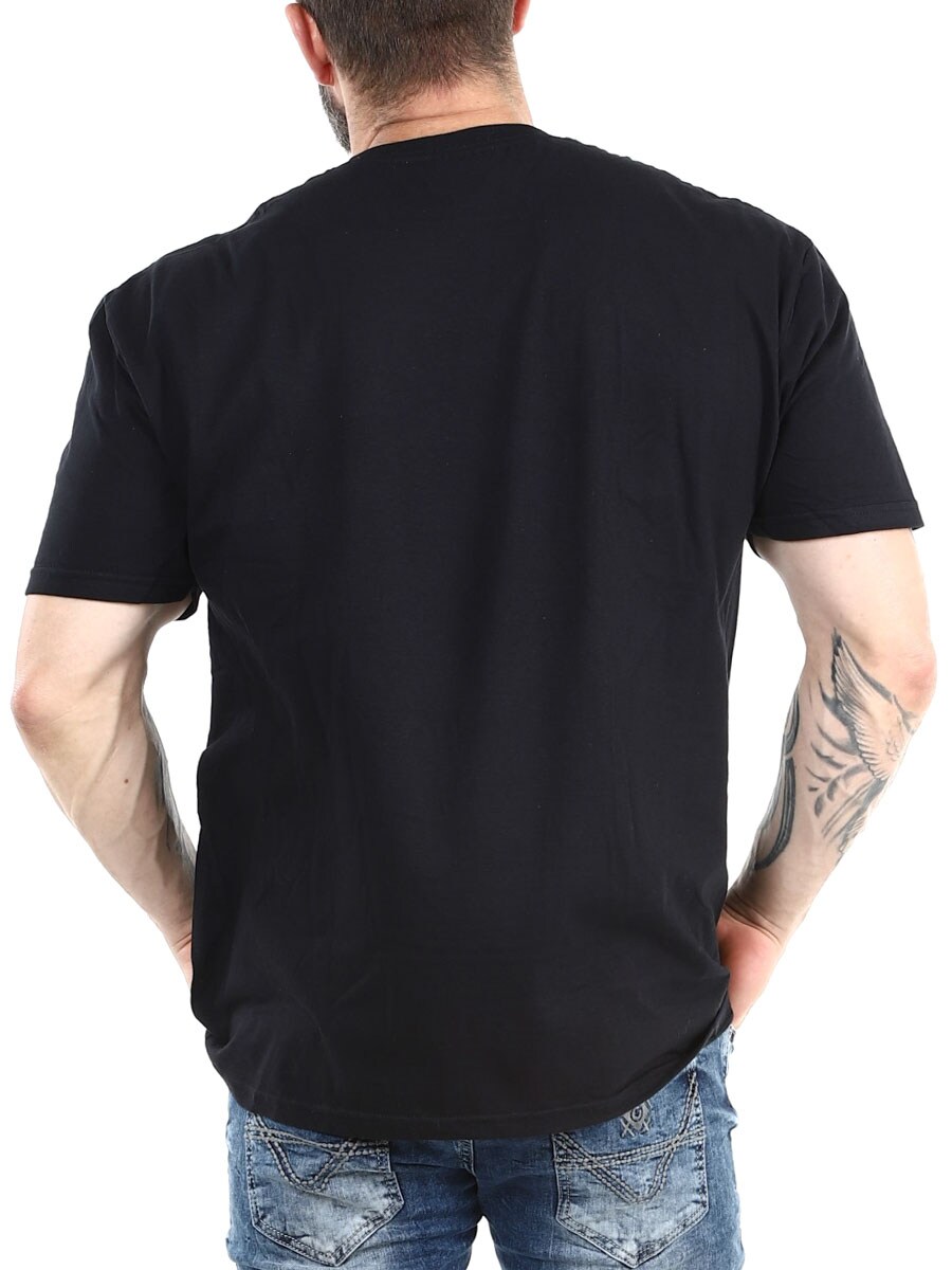 Sort t-shirt, der hylder amerikansk motorhistorie og som udstråler attitude. Fremstillet af blød bomuld med en klassisk pasform der giver hverdagskomfort. Perfekt til motortræf, cruising eller som en afslappet statement beklædningsgenstand i dit hverdagslook!
