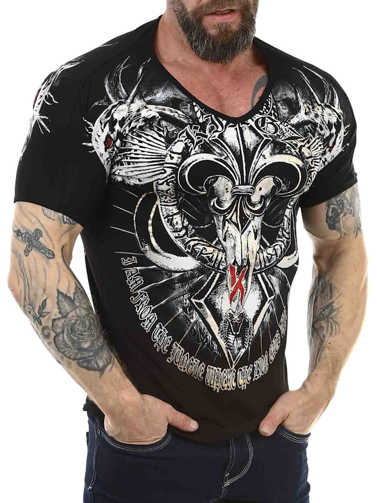 T-shirt med v-udskæring, tryk og sten. Fremstillet i et behageligt bomuldsmateriale med en slank pasform. Denne cool t-shirt er for dig der vil skille dig ud fra mængden!