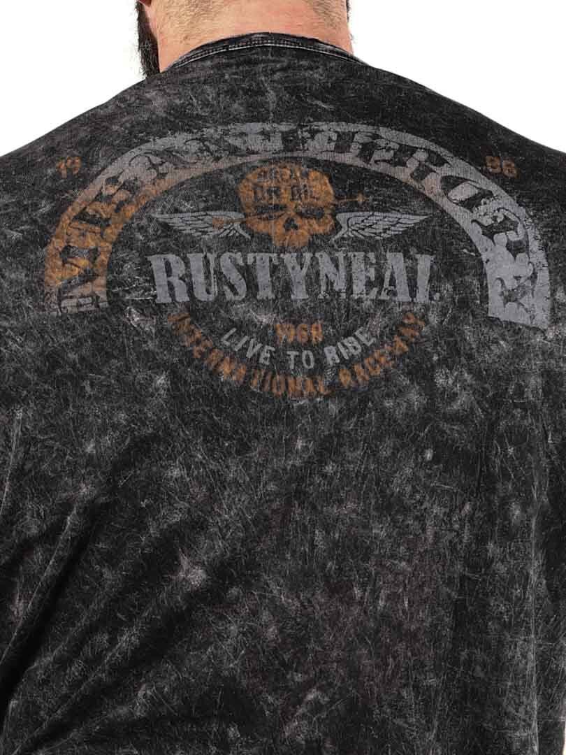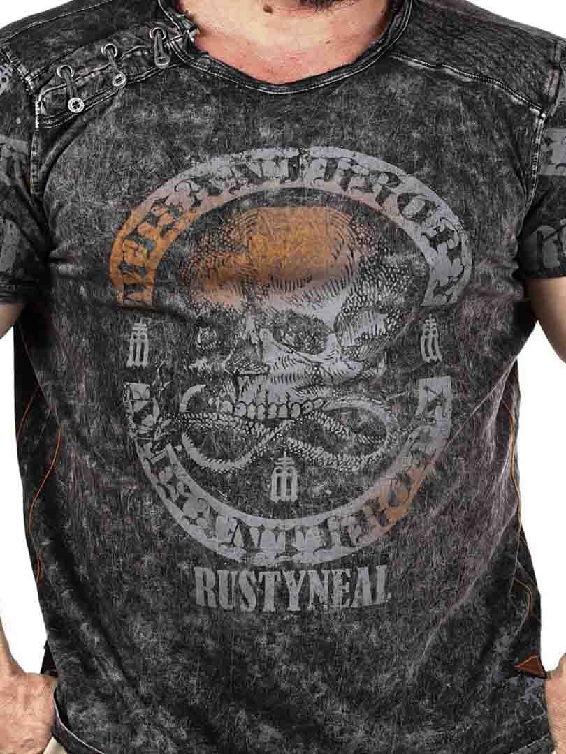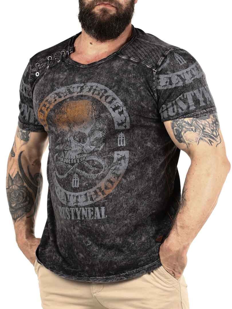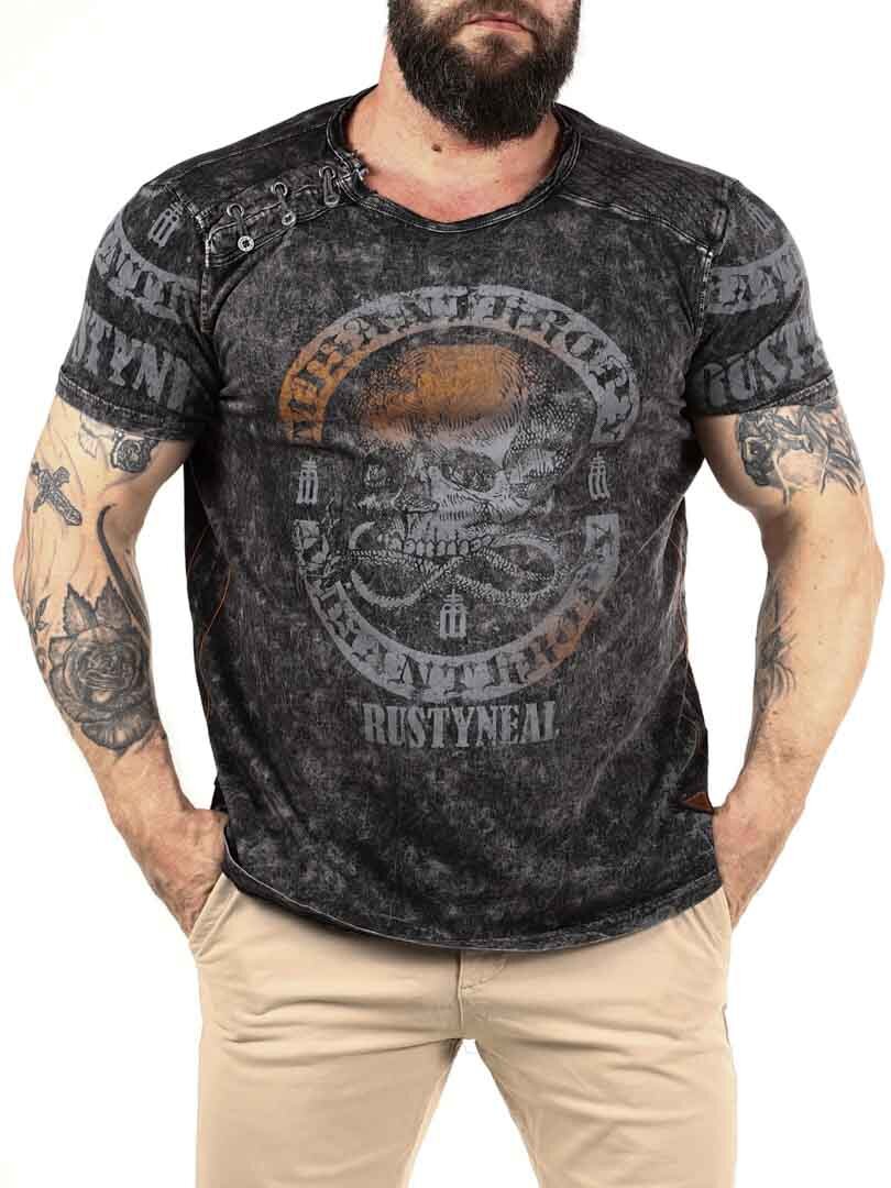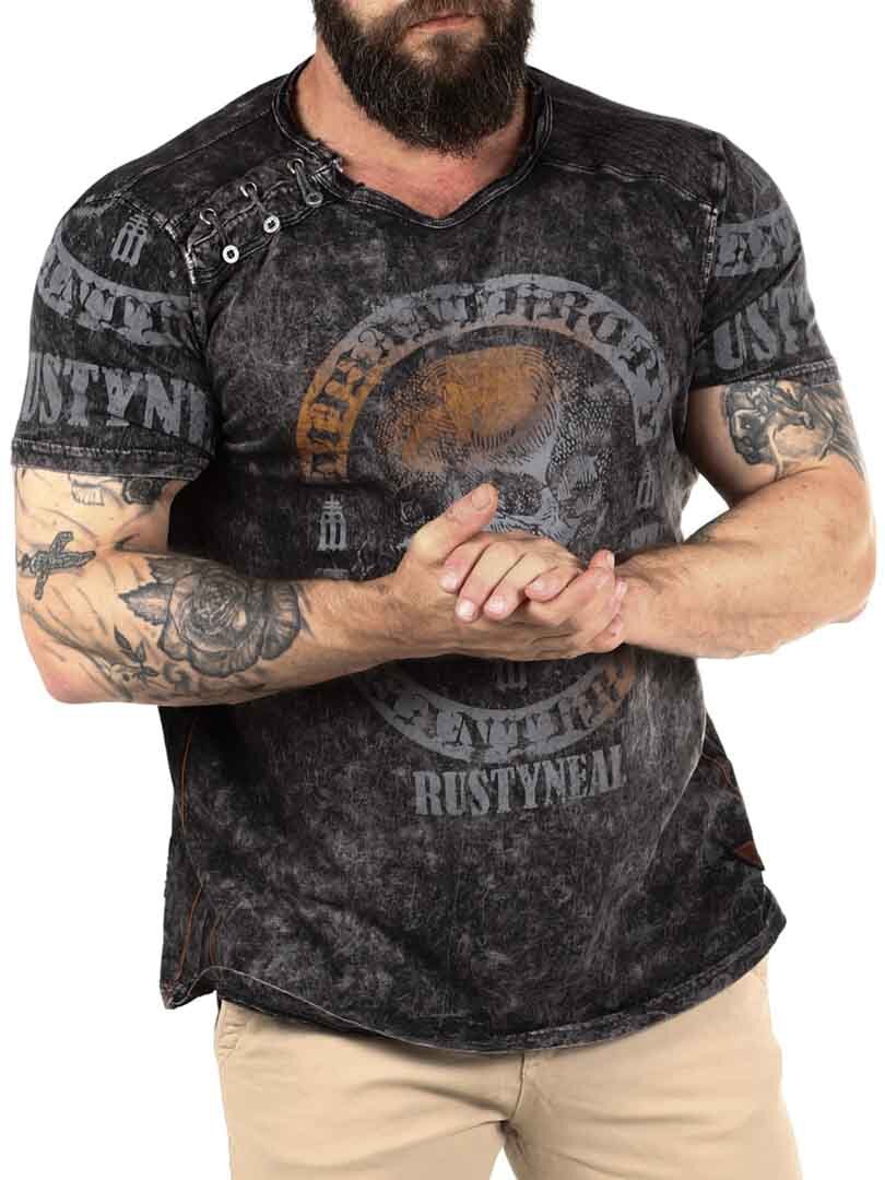 Cool t-shirt med tryk og lapper. Den har en afrundet åbning i halsen med knapper samt et ternet mønster på venstre skulder. Den er fremstillet i en blød og elastisk bomuld.