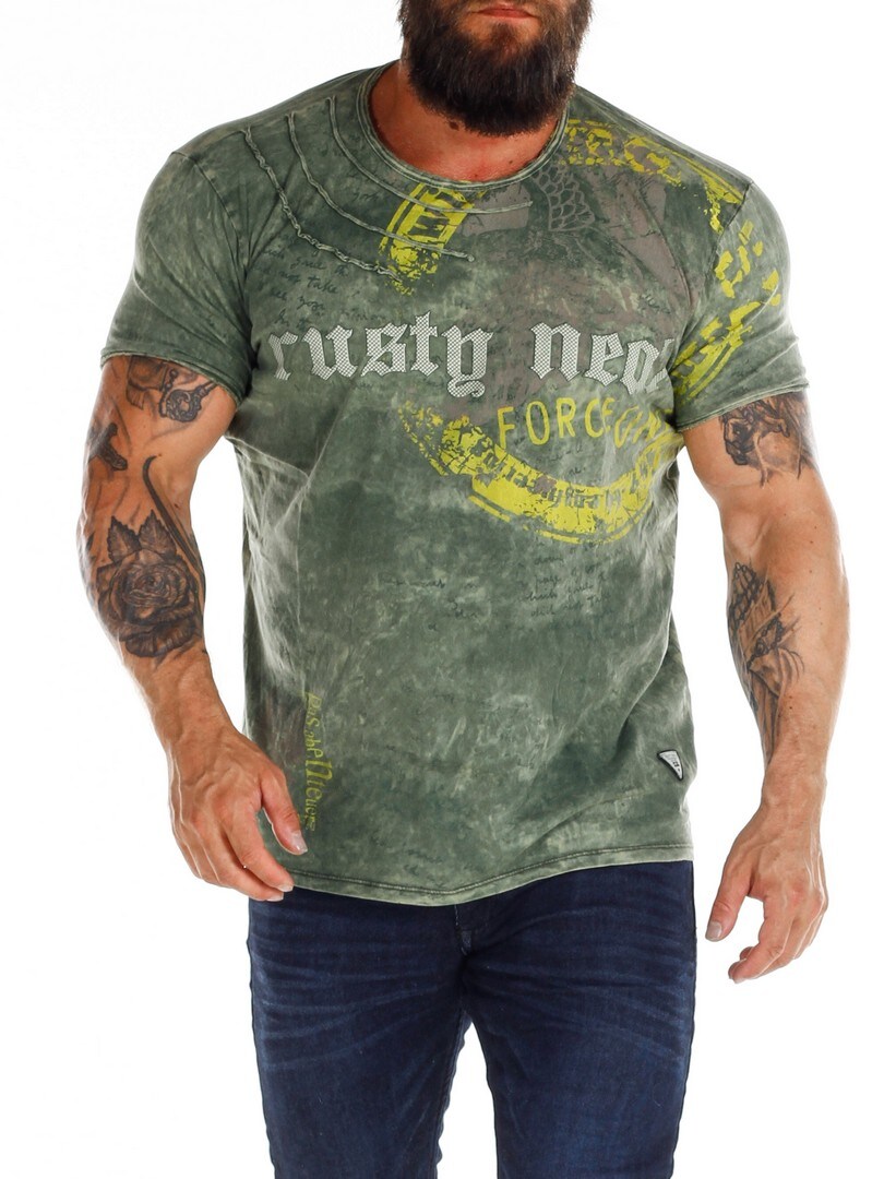 Grøn t-shirt med en normal pasform og en afrundet hals i et cool design med grove sømme og et teksttryk på forsiden. Den er fremstillet i et bomuldsmateriale, hvor der er stræk i. Hertil kommer rå kanter og en lap med logoet, som kan ses i linningen forneden. Den findes i flere farver!