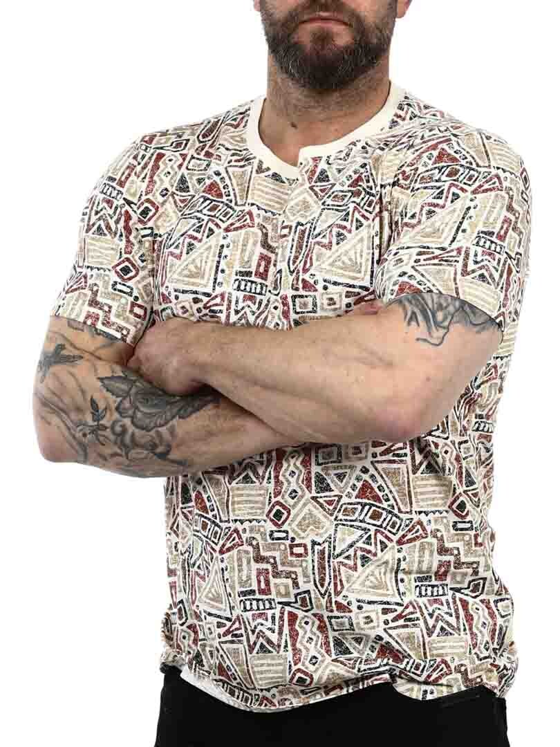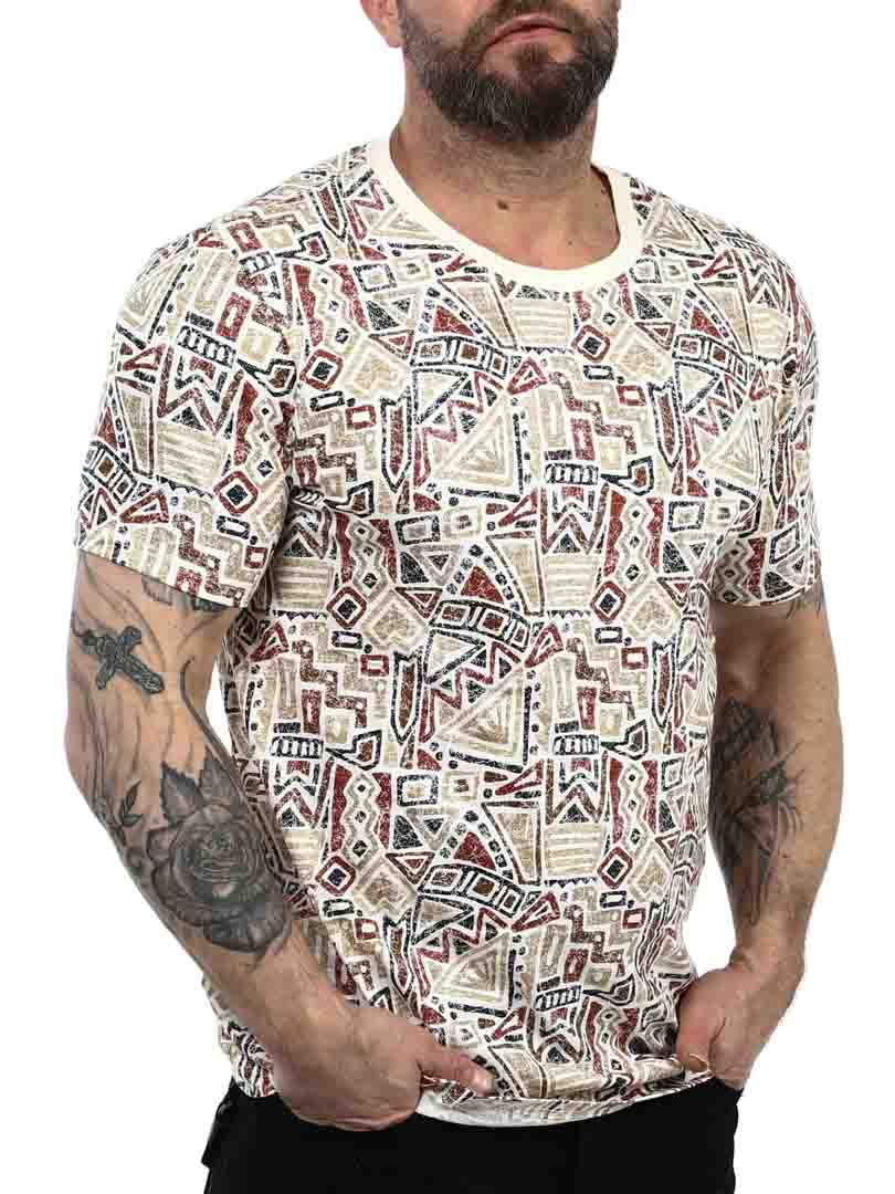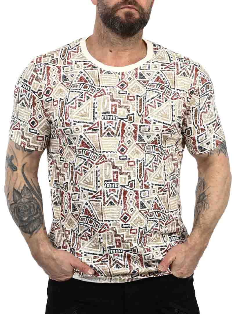 Flerfarvet t-shirt i blød bomuldsjersey med et grafisk mønster. Den har en klassisk pasform med en rund udskæring i halsen. Giv din garderobe et unikt touch med denne stilfulde og behagelige t-shirt!