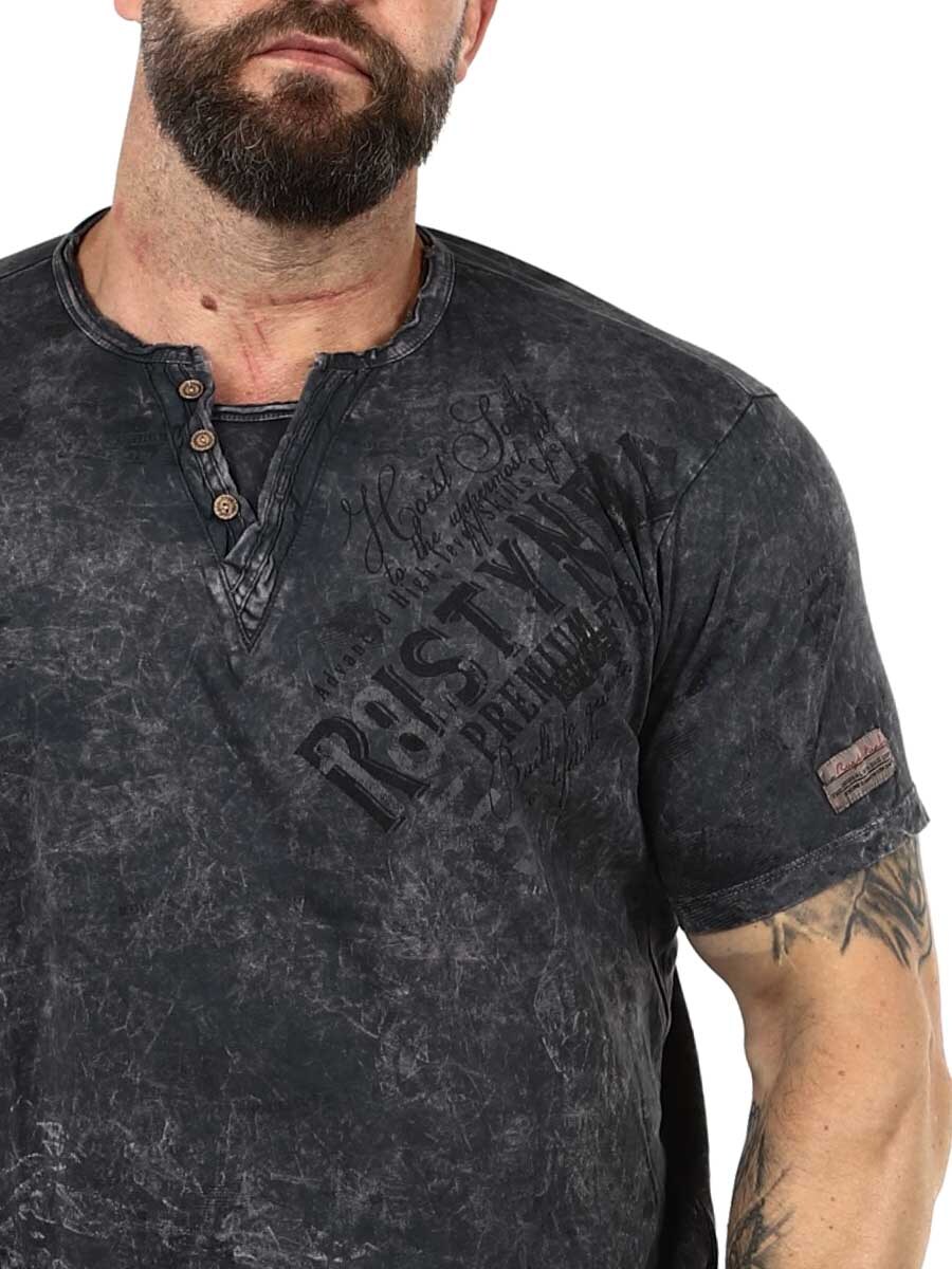 Mønstret t-shirt detaljeret med knapper ved halsen, en lap i stof med et logo på, som er placeret på venstre ærme, og hertil kommer en ved linningen forneden. Fremstillet i en blød bomuld, hvor der er stræk i, hvilket gør, at den sidder dejligt på kroppen!