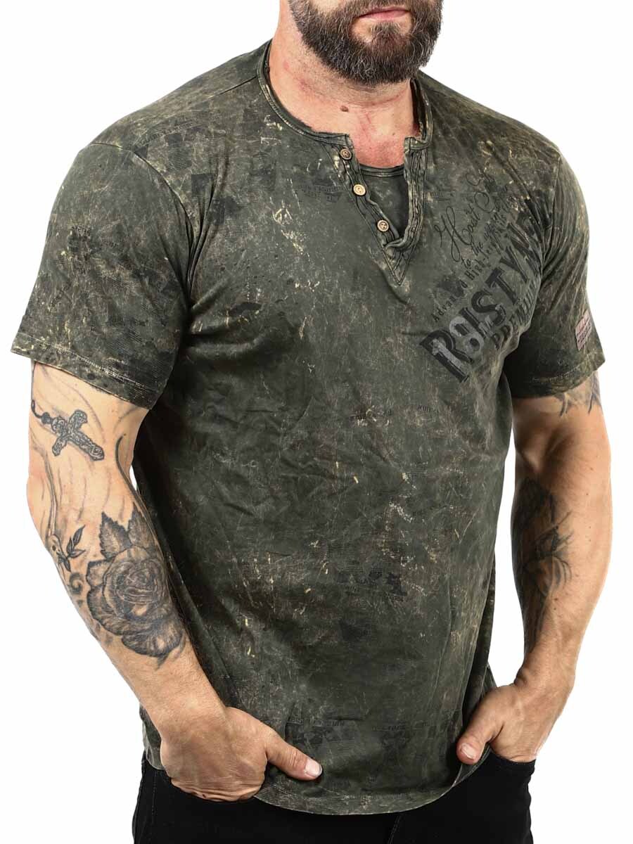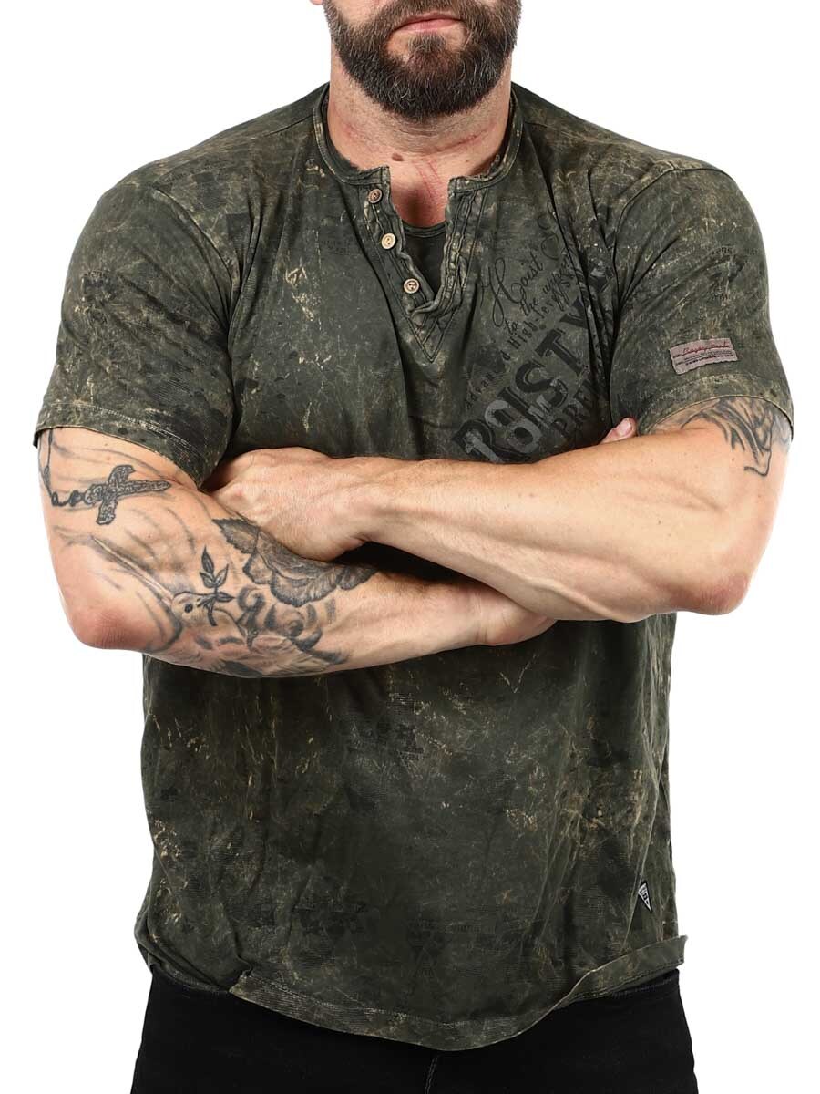 Mønstret t-shirt detaljeret med knapper ved halsen, en lap i stof med et logo på, som er placeret på venstre ærme, og hertil kommer en ved linningen forneden. Fremstillet i en blød bomuld, hvor der er stræk i, hvilket gør, at den sidder dejligt på kroppen!