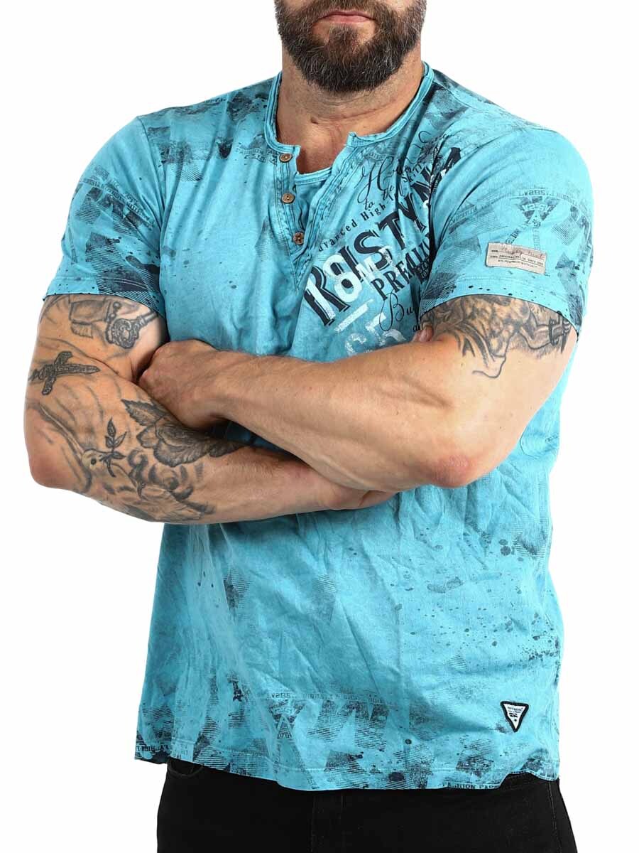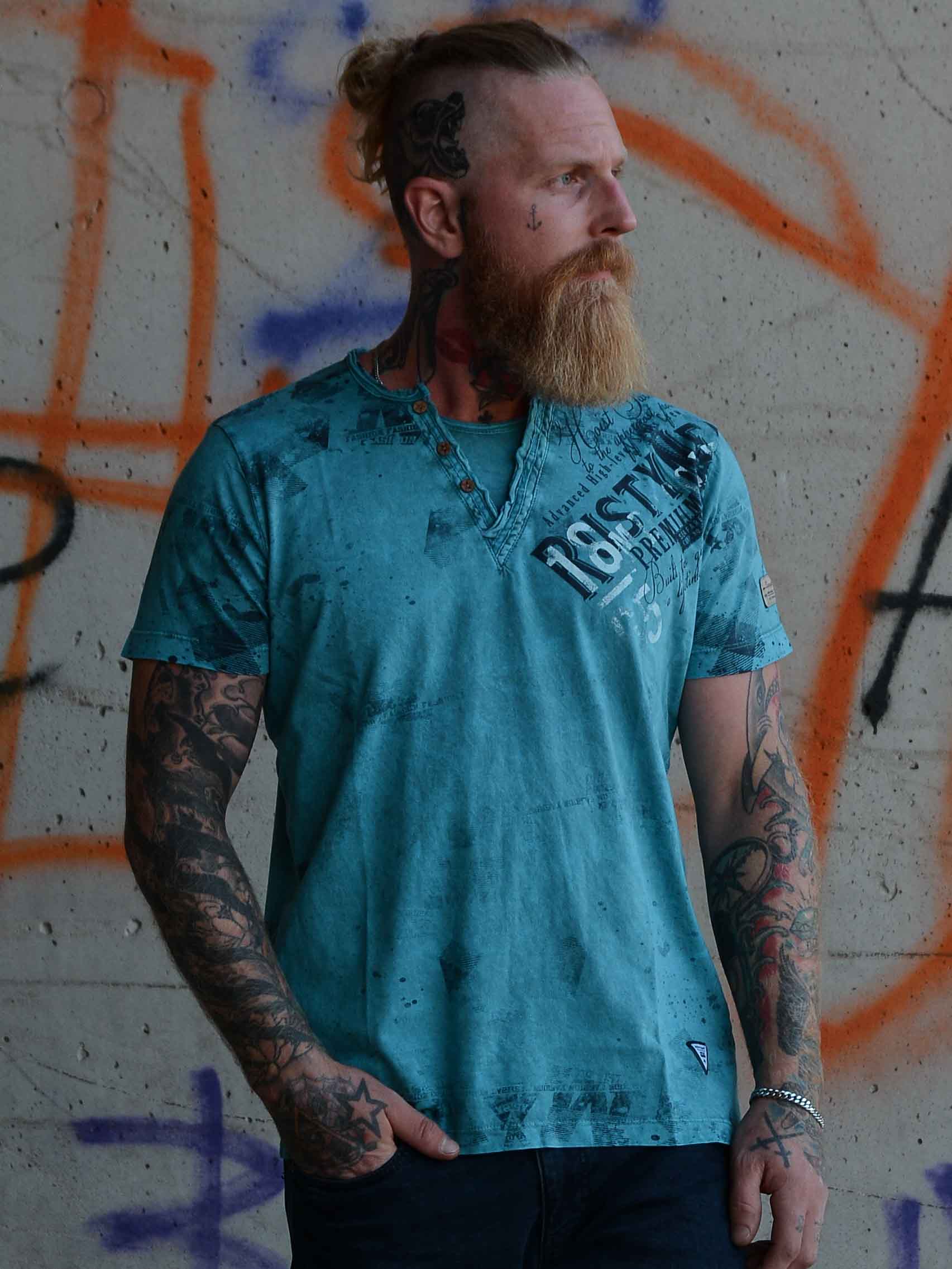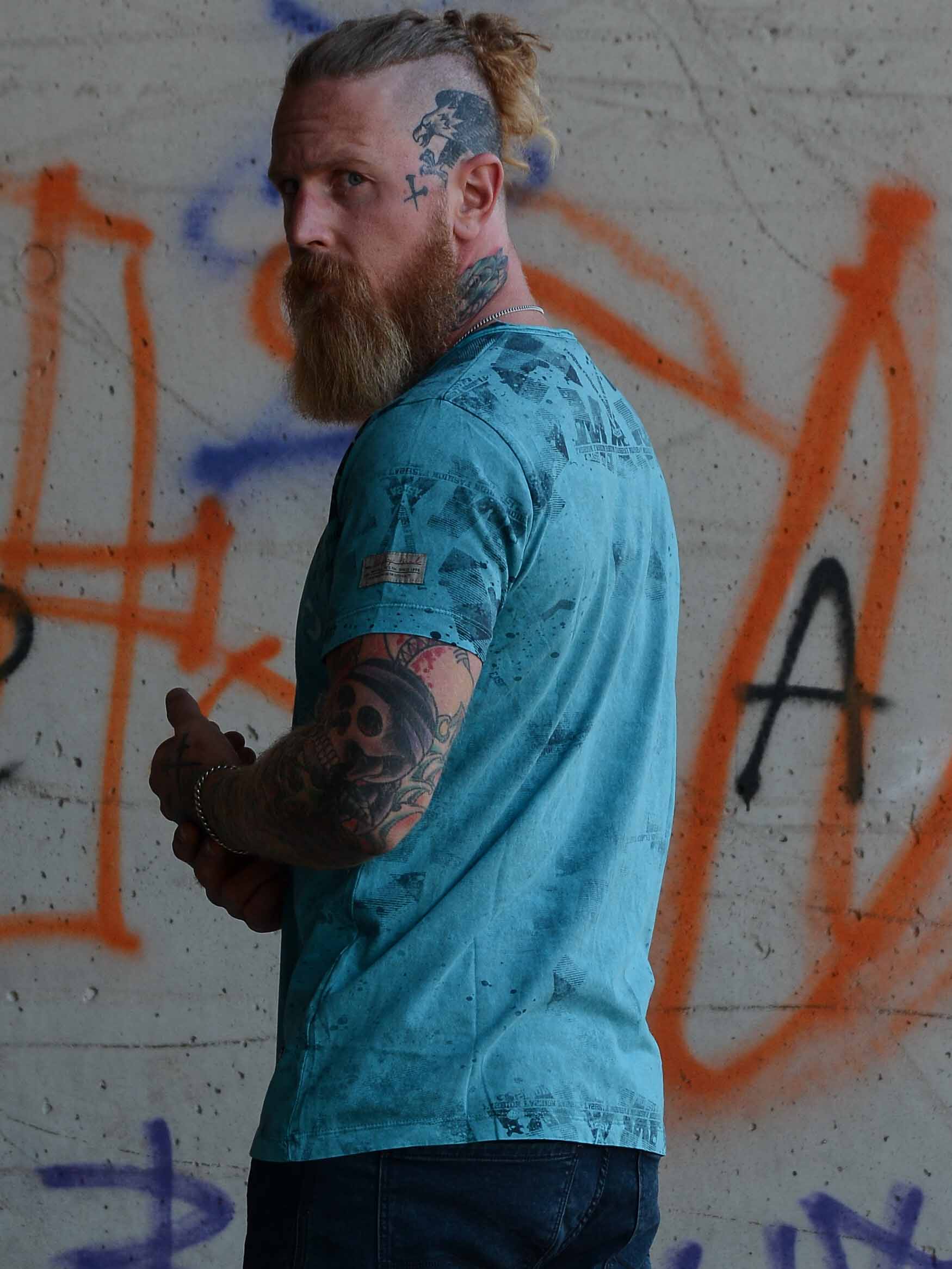 Mønstret t-shirt detaljeret med knapper ved halsen, en lap i stof med et logo på, som er placeret på venstre ærme, og hertil kommer en ved linningen forneden. Fremstillet i en blød bomuld, hvor der er stræk i, hvilket gør, at den sidder dejligt på kroppen!