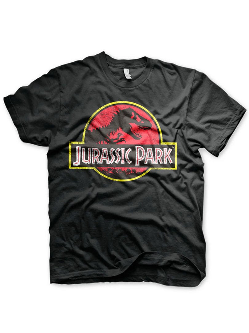 Sort T-shirt med Jurassic Park-tryk på fronten. T-shirten har klassisk pasform med rund hals – perfekt til fans af eventyr og filmhistorie.