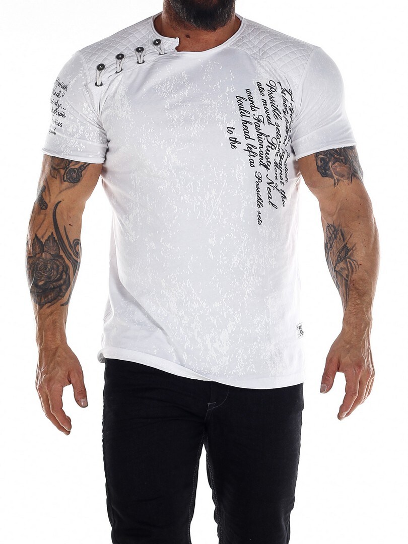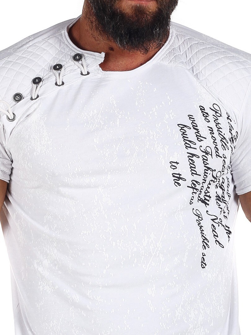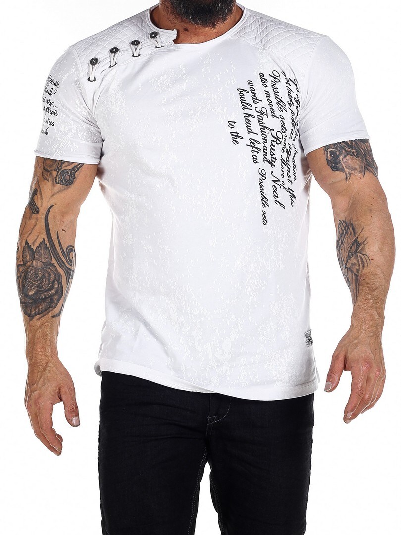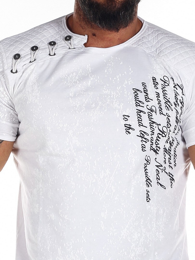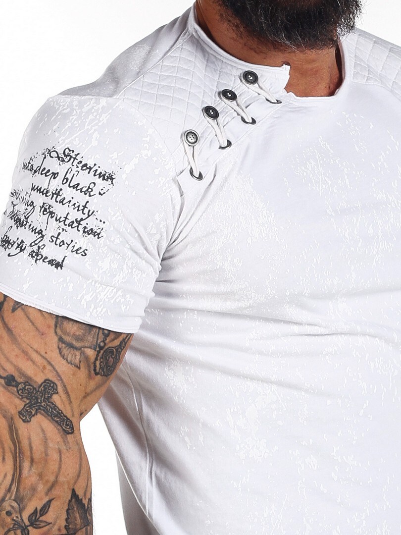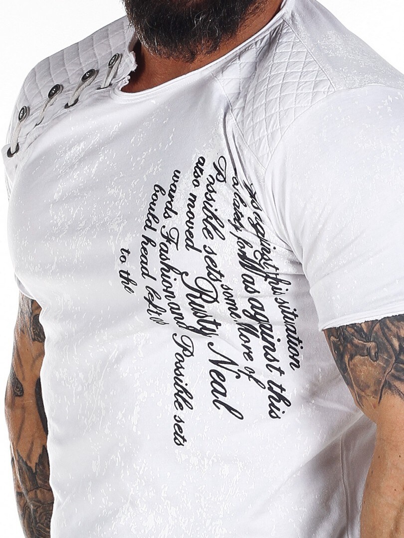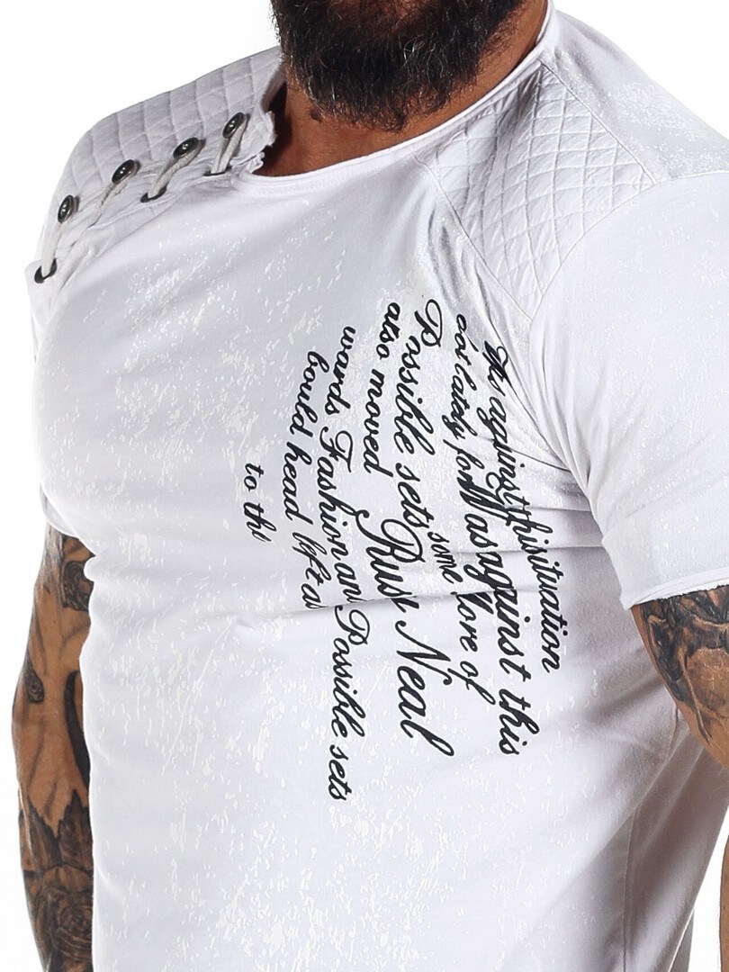 Mønstret t-shirt i bomuldsmateriale med stretch i. Teksttryk på venstre side af brystet og på den højre arm. Markerede skuldre med knapper og et ternet mønster, afrundet hals, rå kanter og en lap i stof med logoet i linningen forneden. Findes i flere farver!