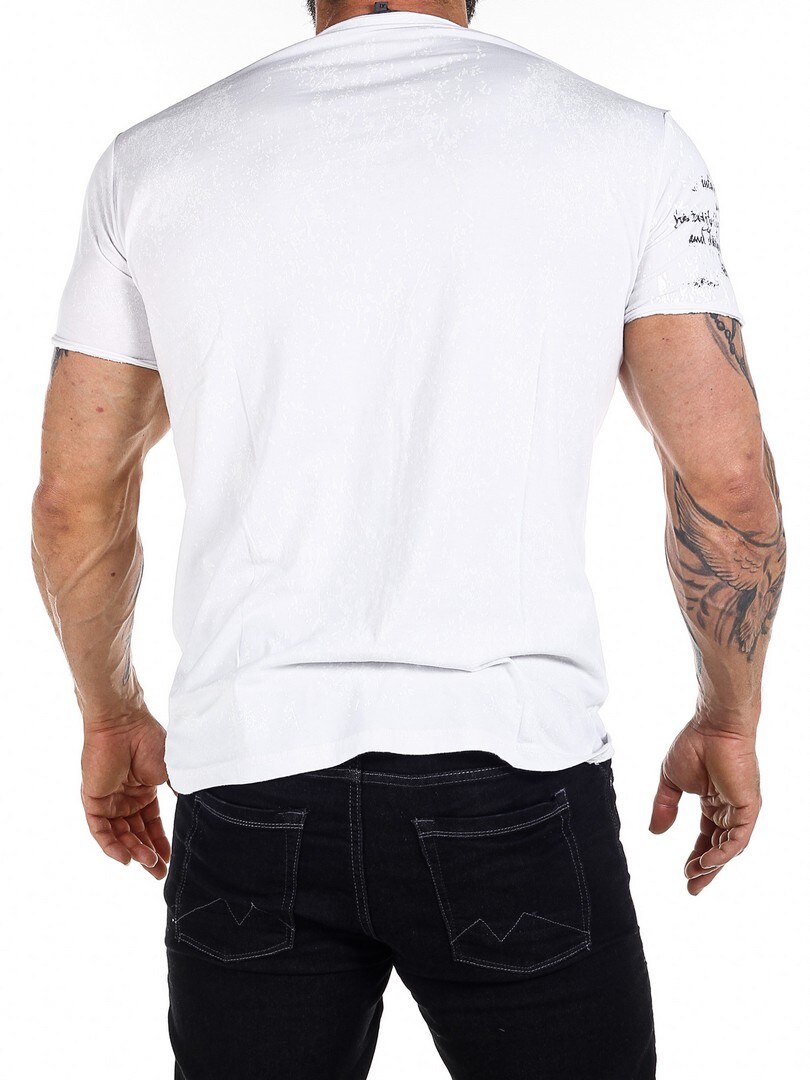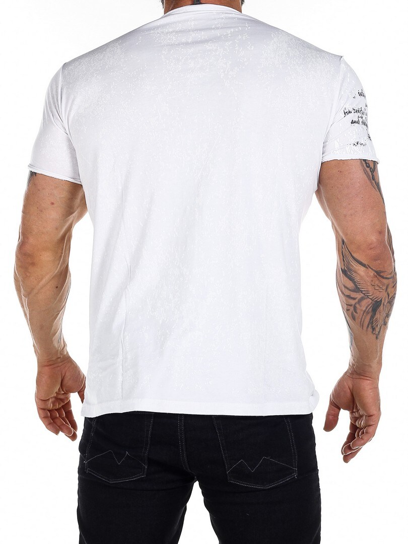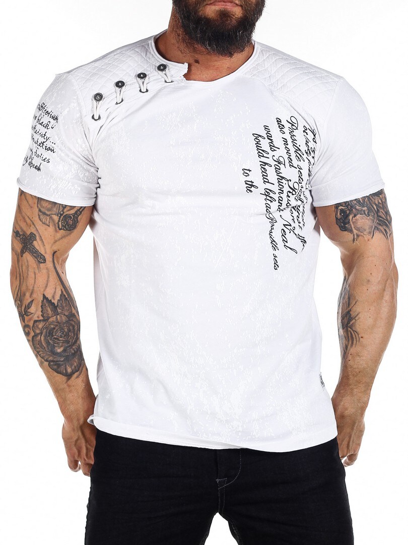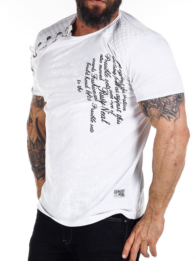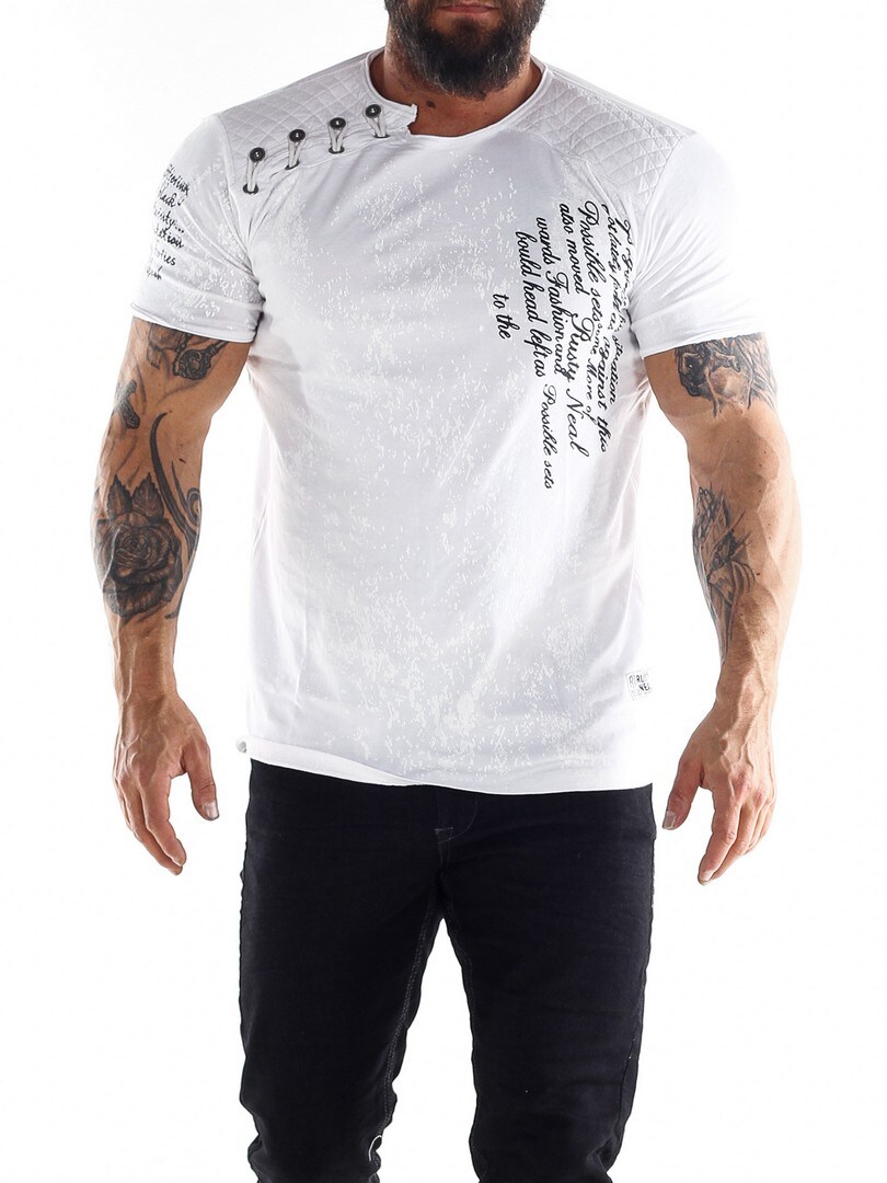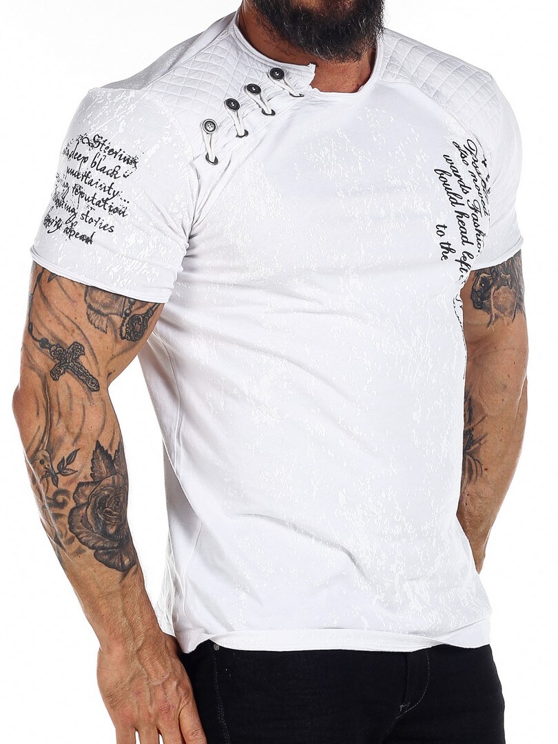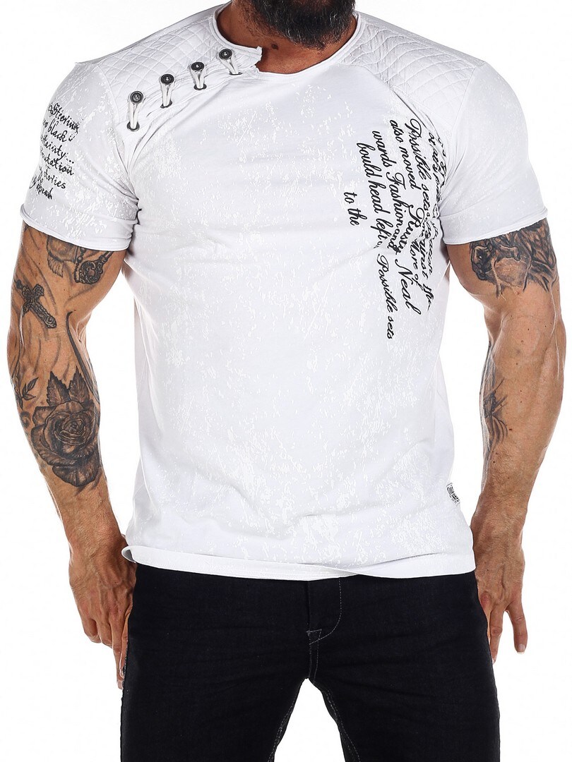 Mønstret t-shirt i bomuldsmateriale med stretch i. Teksttryk på venstre side af brystet og på den højre arm. Markerede skuldre med knapper og et ternet mønster, afrundet hals, rå kanter og en lap i stof med logoet i linningen forneden. Findes i flere farver!