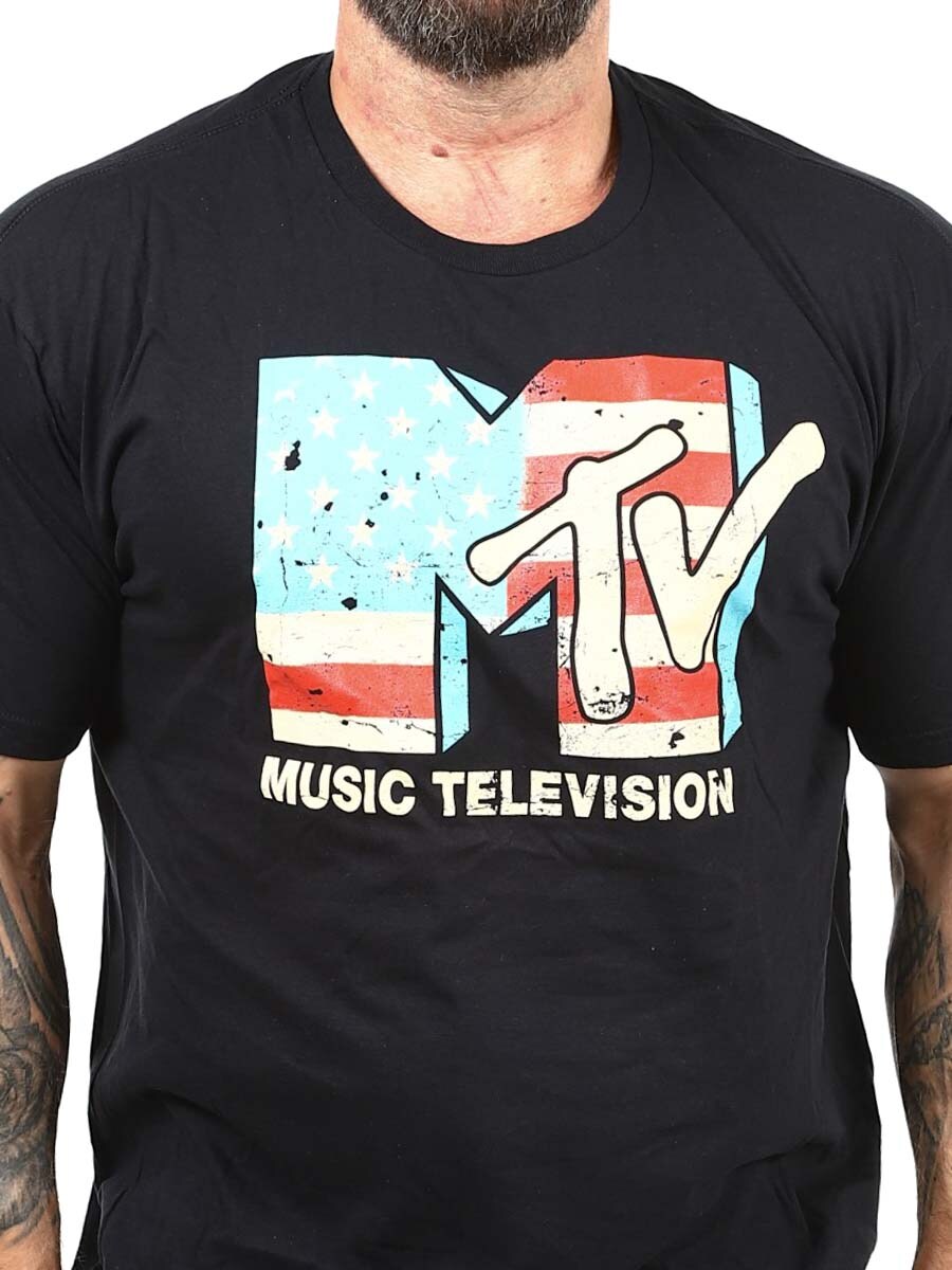 Denne sorte t-shirt med et klassisk MTV-tryk fortil er en hyldest til den tid, hvor musikvideoer regerede verden. Med det ikoniske logo i midten får du et stilfuldt retro-look med en klar attitude.