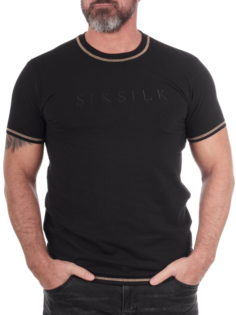 En strækbar T-shirt med sort base, der giver et rent og tidløst udtryk, mens de subtile gule kanter ved hals og ærmer tilfører en elegant kontrast, som gør den lige velegnet til hverdagsbrug som til mere festlige lejligheder. Den har rund halsudskæring og broderet logo på brystet. Fremstillet i et blødt og behageligt materiale, der giver høj komfort hele dagen.