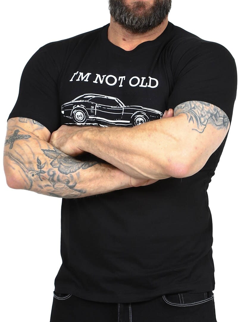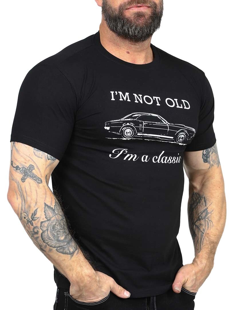 Sort t-shirt med et sjovt tryk, i hvidt, findes fortil. T-shirten har en klassisk pasform med en afrundet åbning i halsen. Den er fremstillet i en dejlig og elastisk bomuldskvalitet. Denne t-shirt er særligt fremstillet til vores kunder, og den findes kun hos RockDenim!