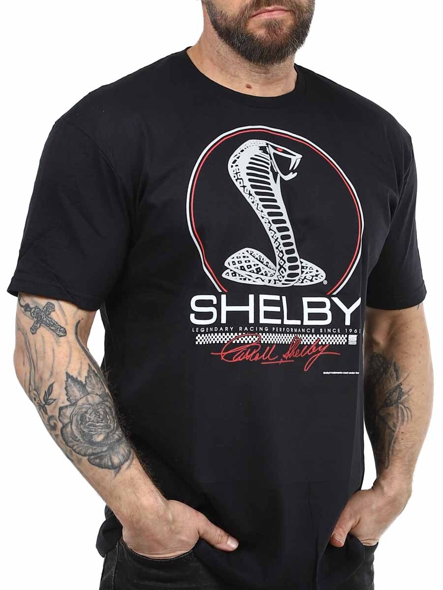 Vis din passion for klassisk amerikanske racerløb med denne stilfulde Shelby t-shirt. Den har en klassisk pasform og en rund udskæring i halsen. Fremstillet af 100 % bomuld.