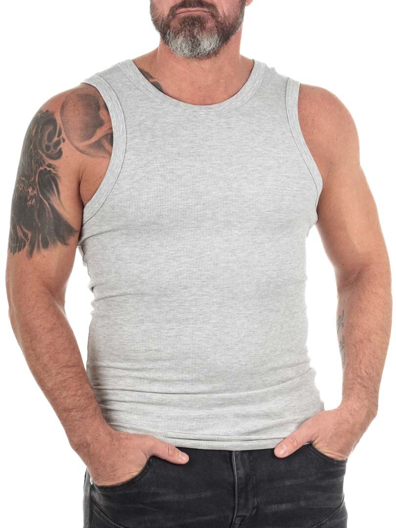 Denne ribbede herreundertrøje er et must i basisgarderoben. Fremstillet i en blød og strækbar bomuldsblanding, der følger kroppen og fremhæver fysikken uden at gå på kompromis med komforten. Perfekt til både træning, hverdag og som lag under skjorte eller hoodie.