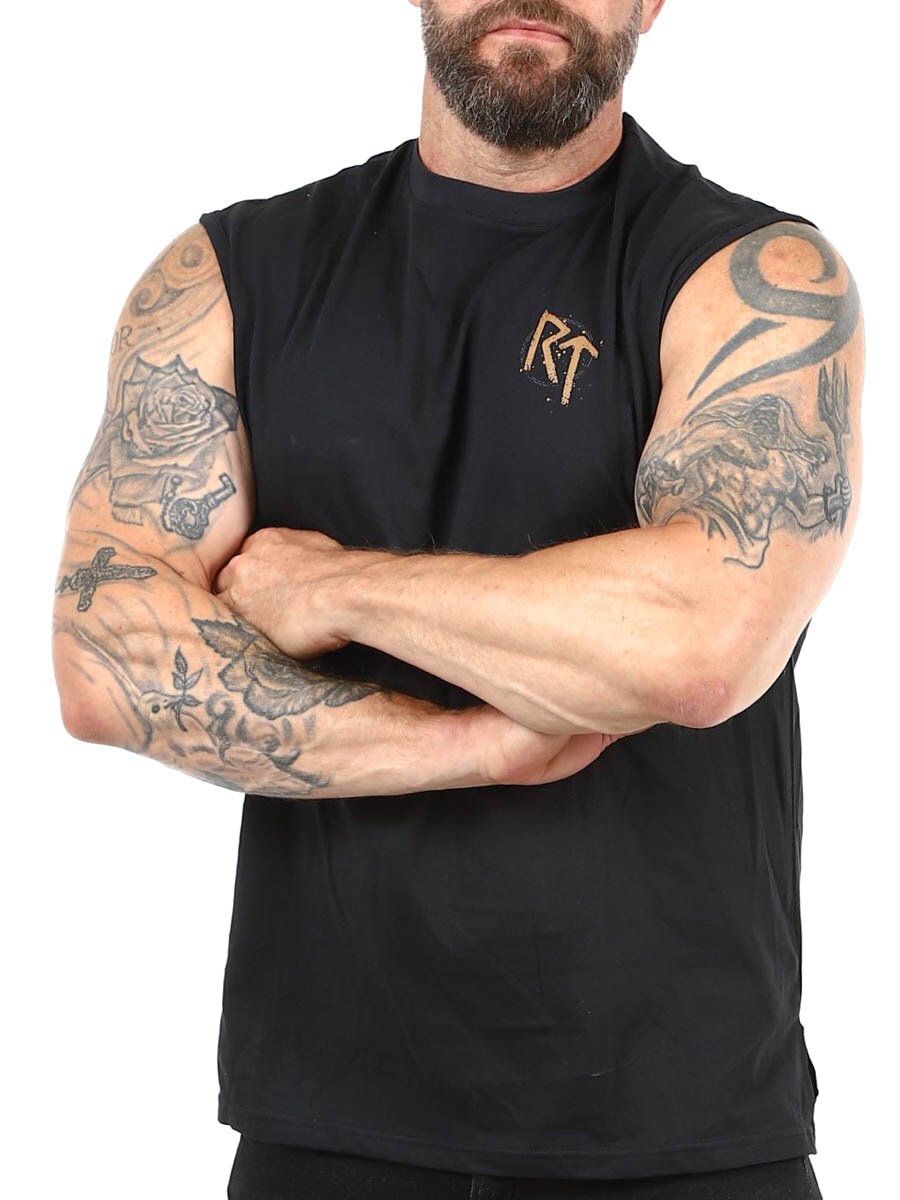 Denne sorte tank top kombinerer enkelhed med attitude. Et stort print på ryggen giver et stærkt statement, mens det mindre print foran på brystet fuldender looket. Fremstillet i blød bomuld med rund halsudskæring og en kort slids forneden. Findes kun hos os på Rockdenim!