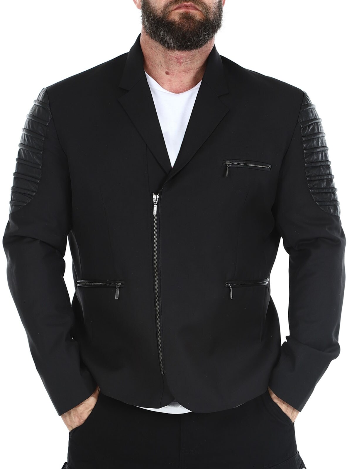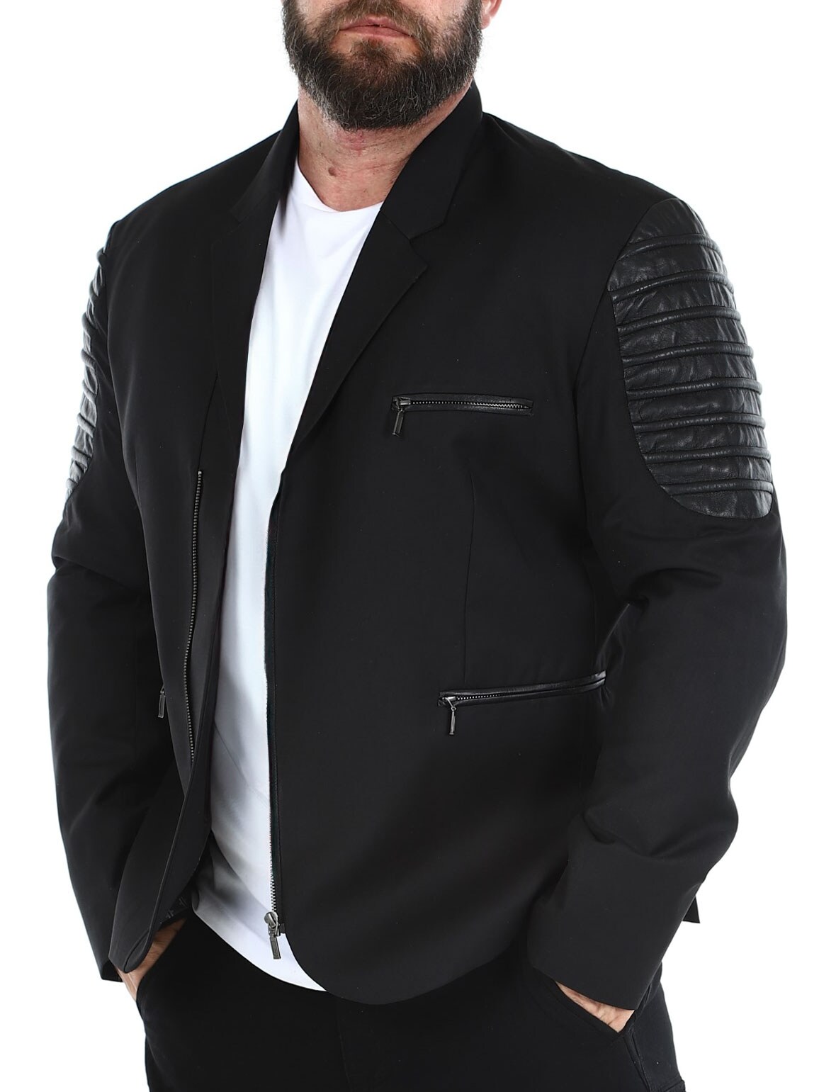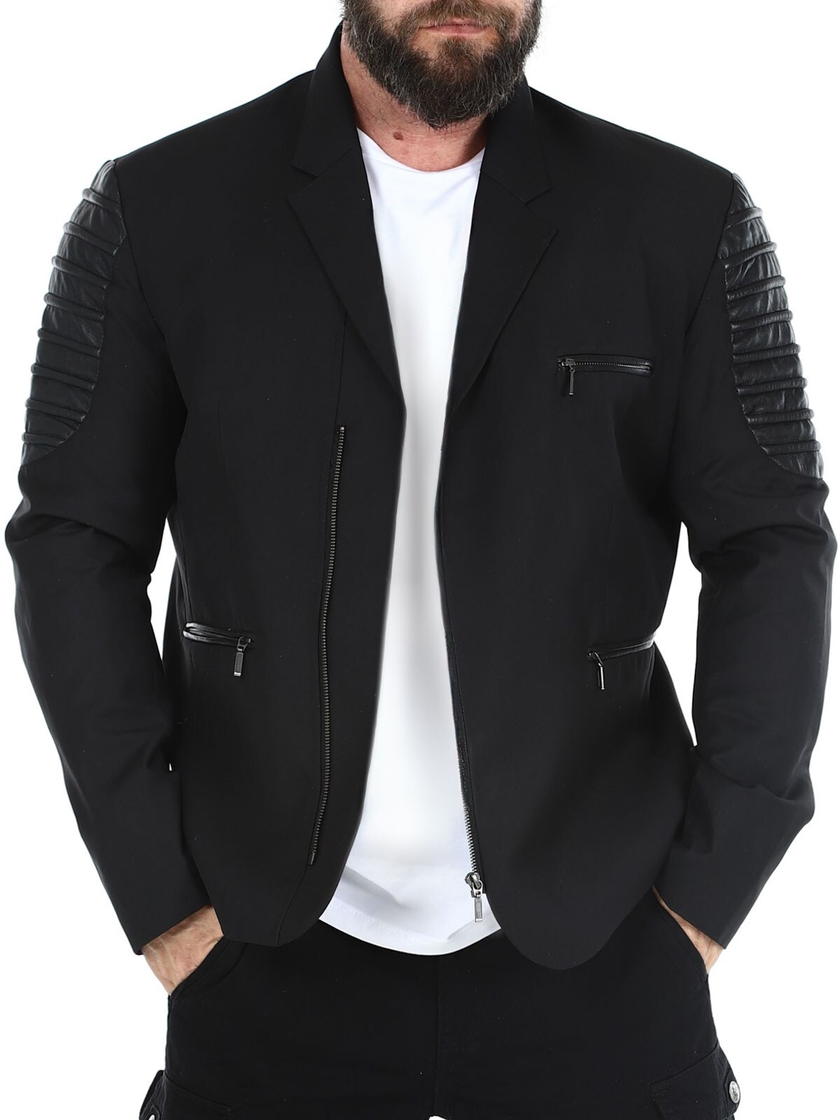 Blazer der kommer i en bomuld med lynlås og dele i imiteret læder. Den har tre lommer fortil med lynlås, samt tre åbne lommer indvendigt. Lækker blazer der kun fås hos RockDenim!