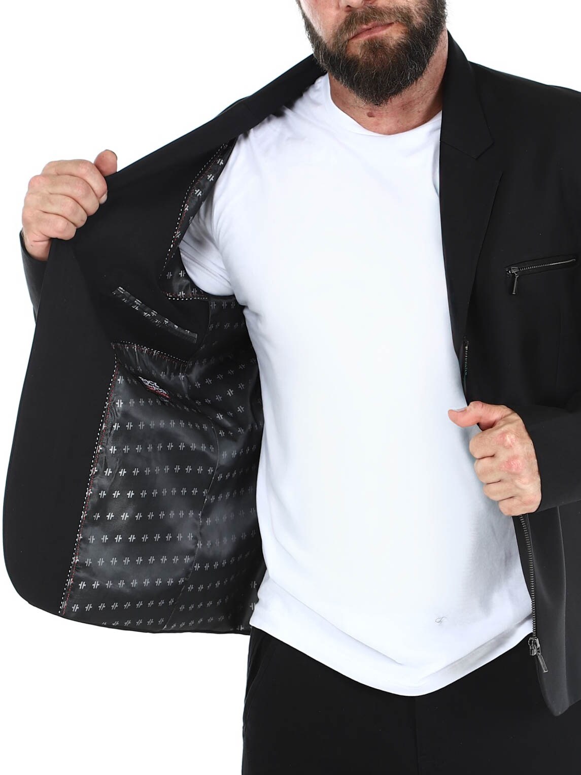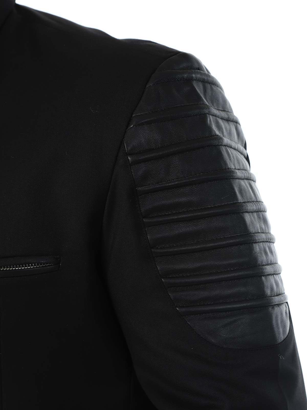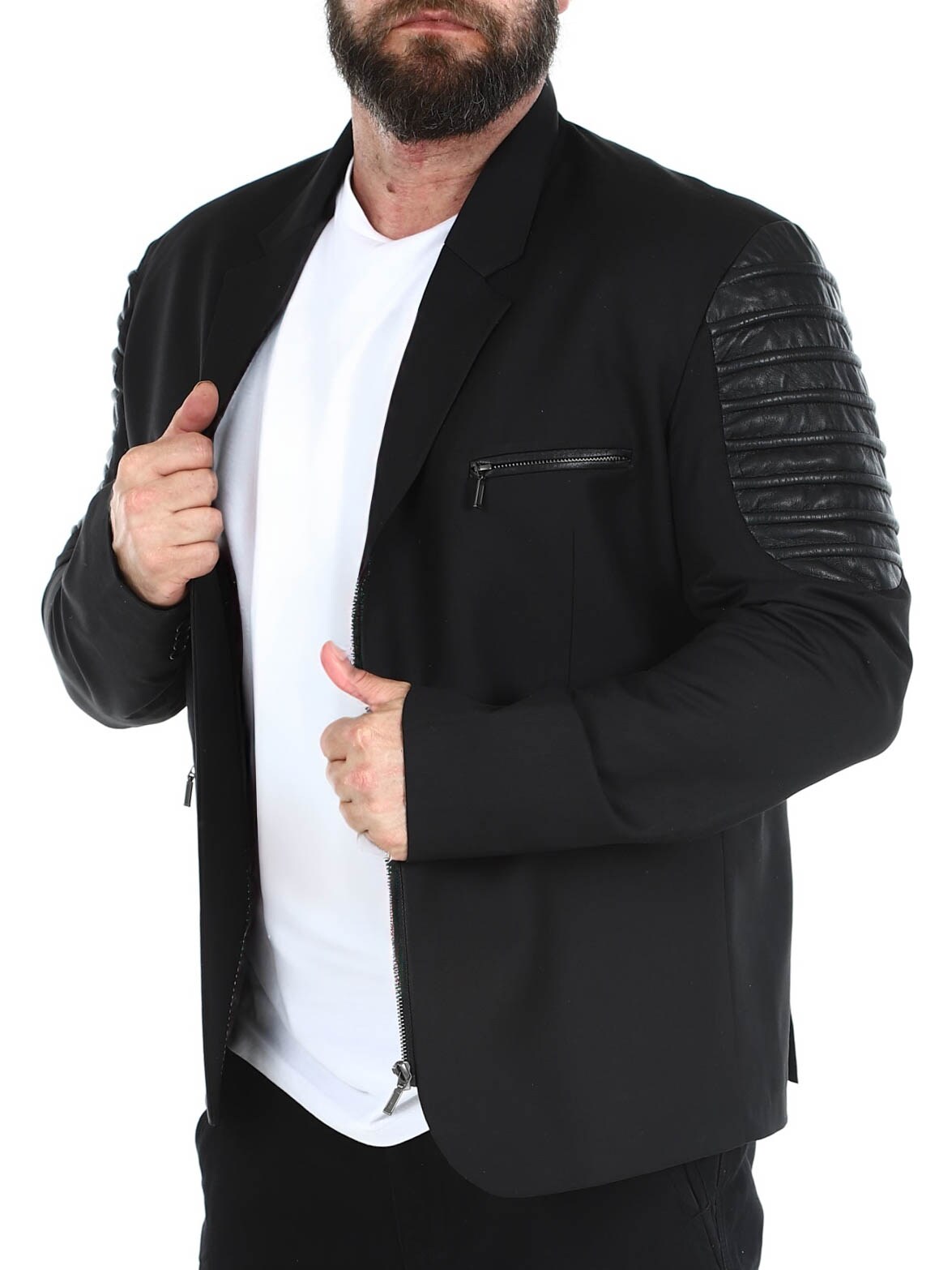 Blazer der kommer i en bomuld med lynlås og dele i imiteret læder. Den har tre lommer fortil med lynlås, samt tre åbne lommer indvendigt. Lækker blazer der kun fås hos RockDenim!