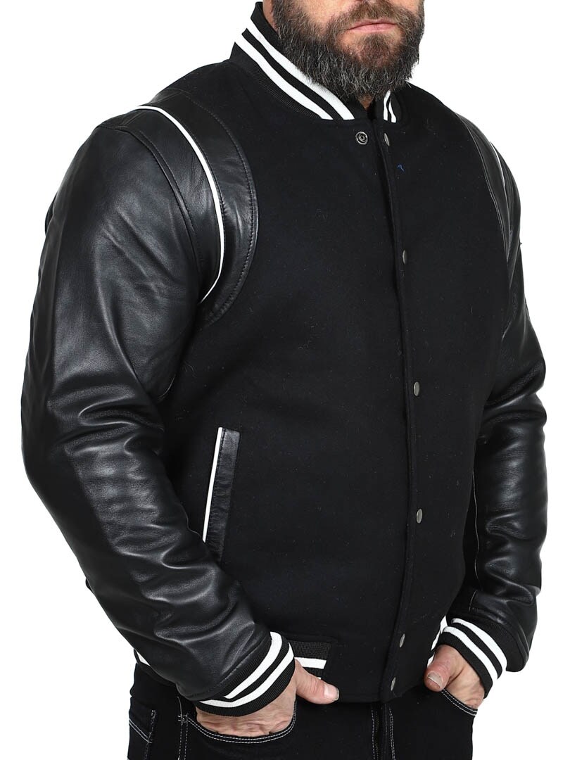 Collegejakke med skindærmer fra RockDenim
