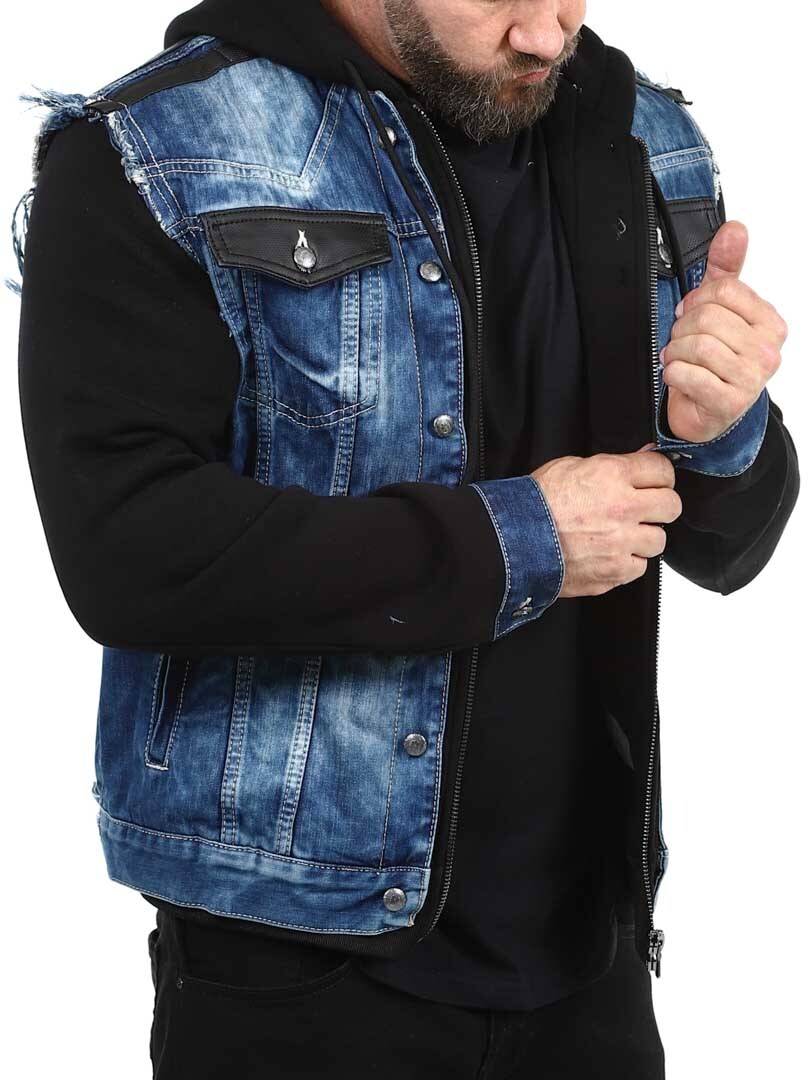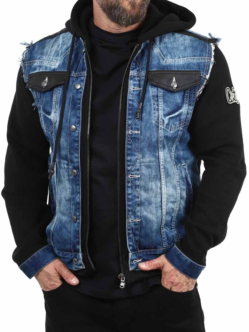 Denne denimjakke med ærmer og hætte i sweatshirtmateriale kombinerer en cool og moderne stil med høj komfort. Den har et vasket denim-look med et skræddersyet tryk og slidte detaljer, der giver den en stilfuld vintage-følelse. Perfekt til et afslappet, men alligevel edgy hverdagslook!