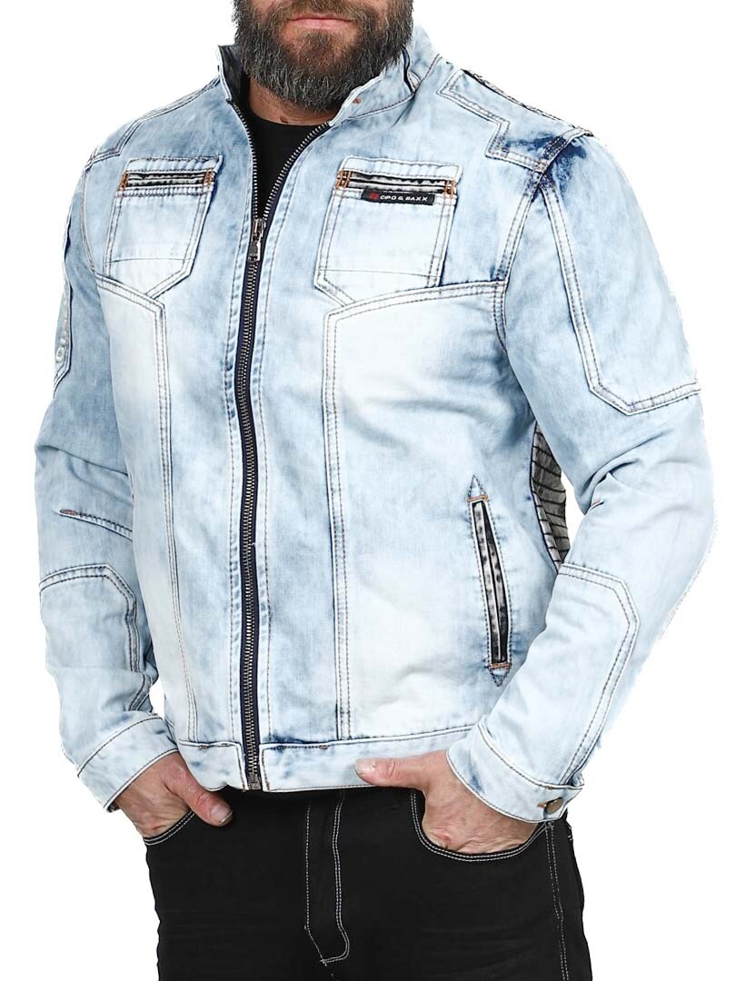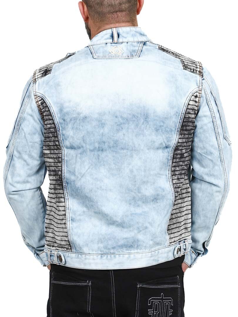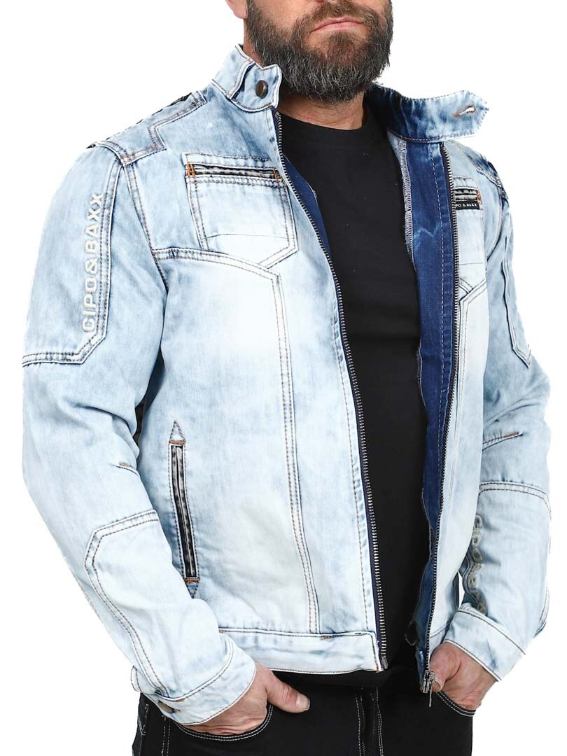 Jakke i en lyseblå denim med en let faded effekt, der giver et moderne look. Den har en lige pasform og er udstyret med en lynlås samt fire lommer fortil. Dertil kommer en kontrastfarve på siderne og de forstærkede sømme giver jakke et cool udseende!