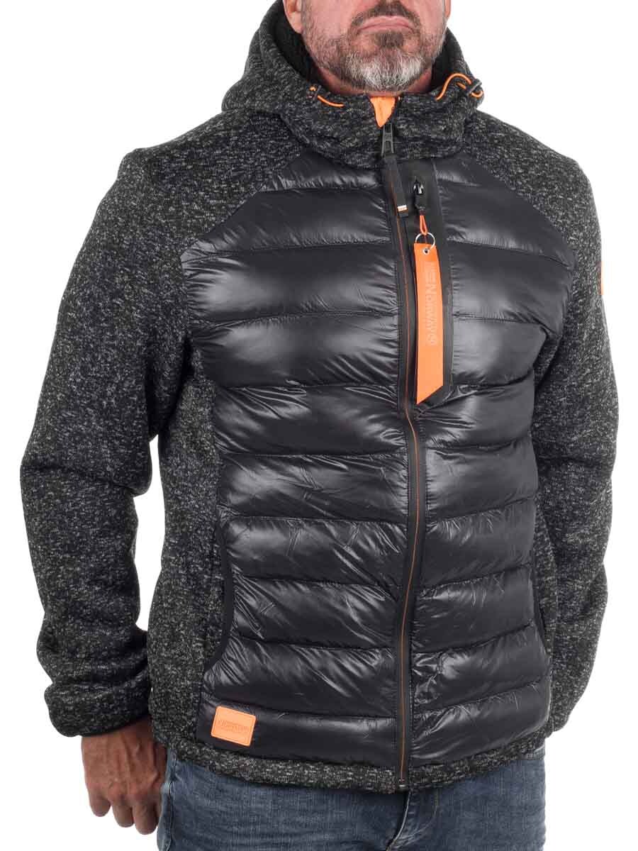 En moderne hybridjakke, der kombinerer sporty funktionalitet med et stilrent design. Jakken har en quiltet, let vatteret front i skinnende materiale, der giver varme og beskytter mod vind. Ærmer og ryg i blød, meleret strik giver fleksibilitet og komfort. En alsidig jakke perfekt til overgangssæsoner – lige anvendelig til hverdag som til udendørsliv.