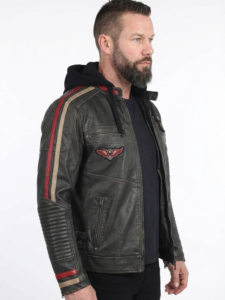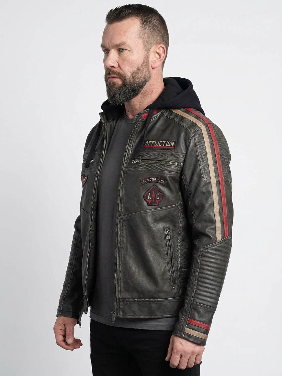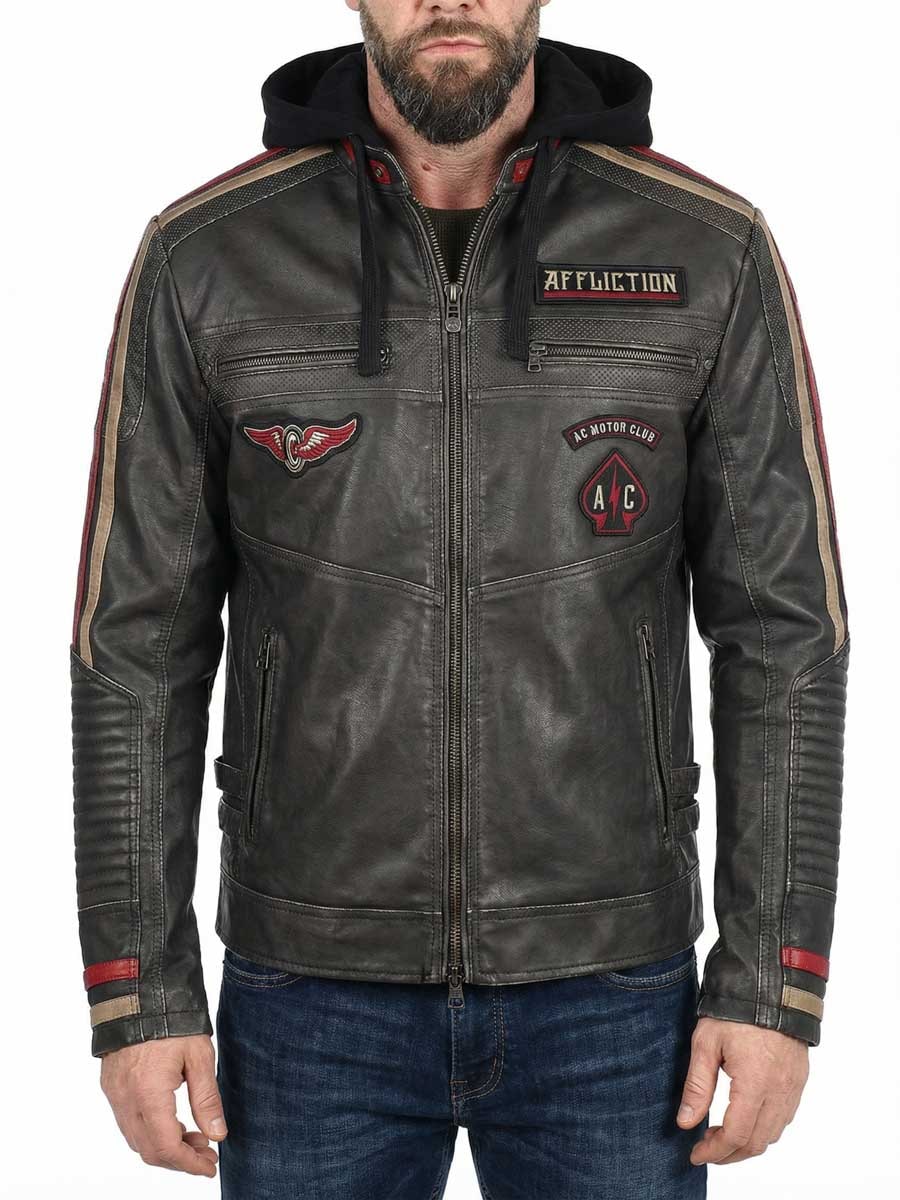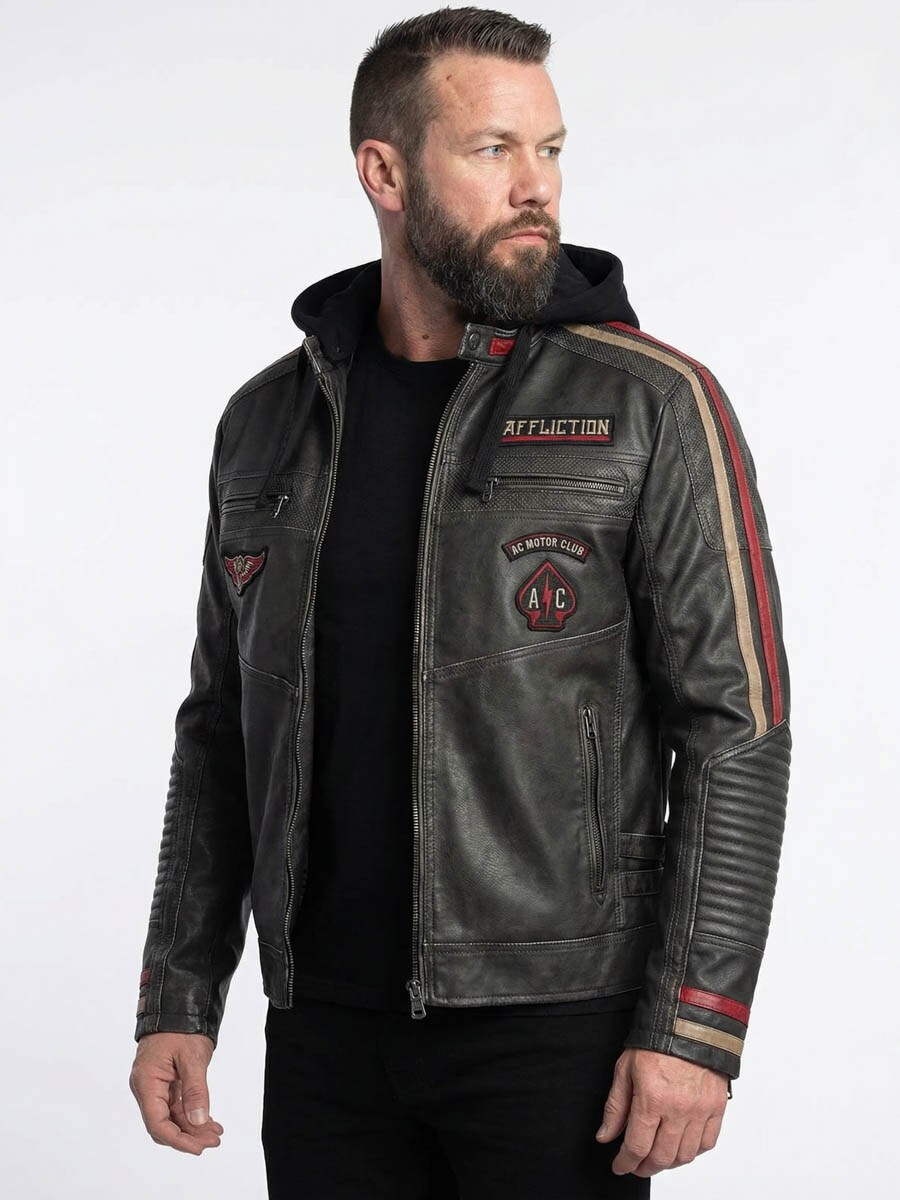 Læderjakke med hætte fra Affliction
