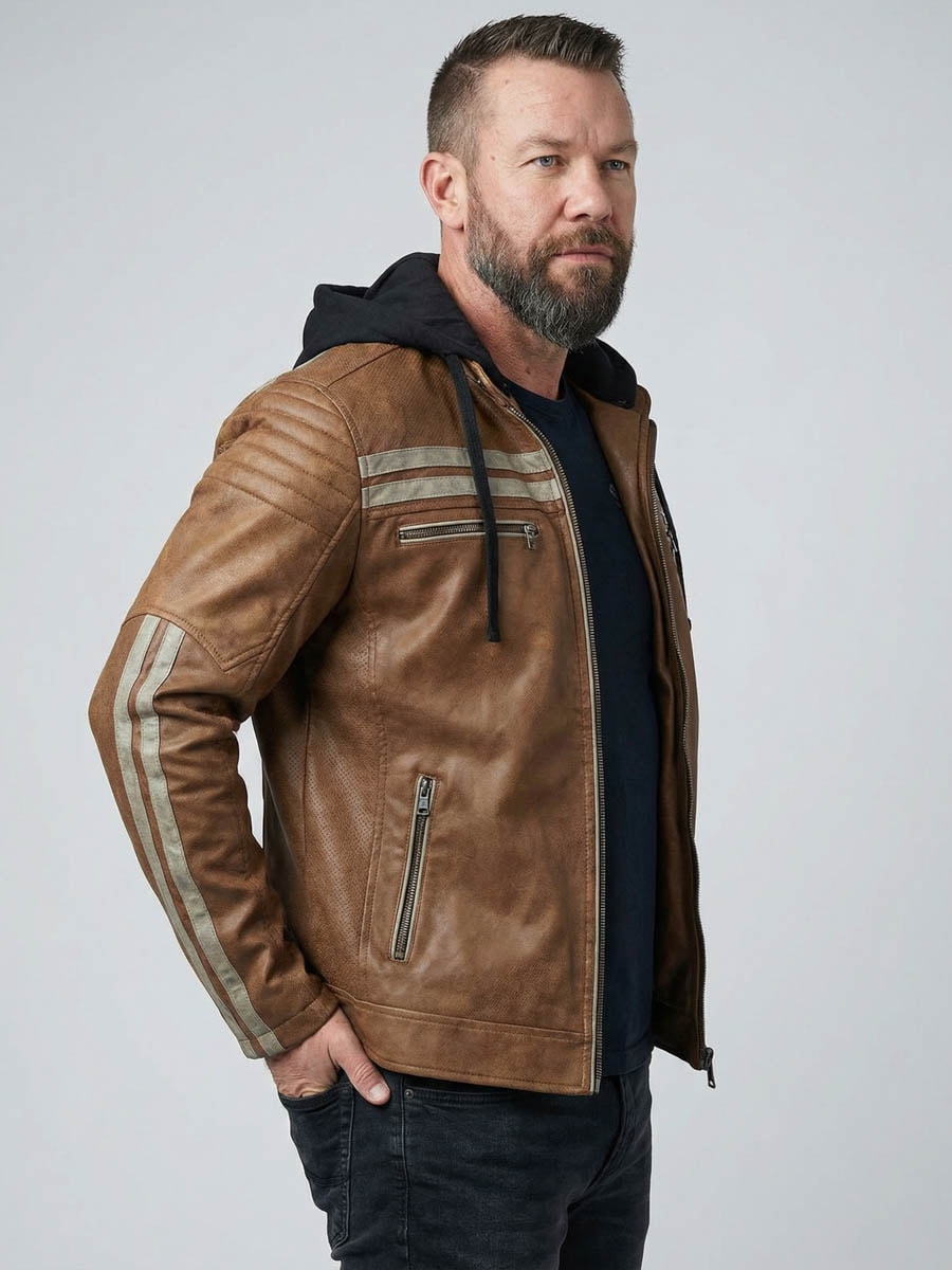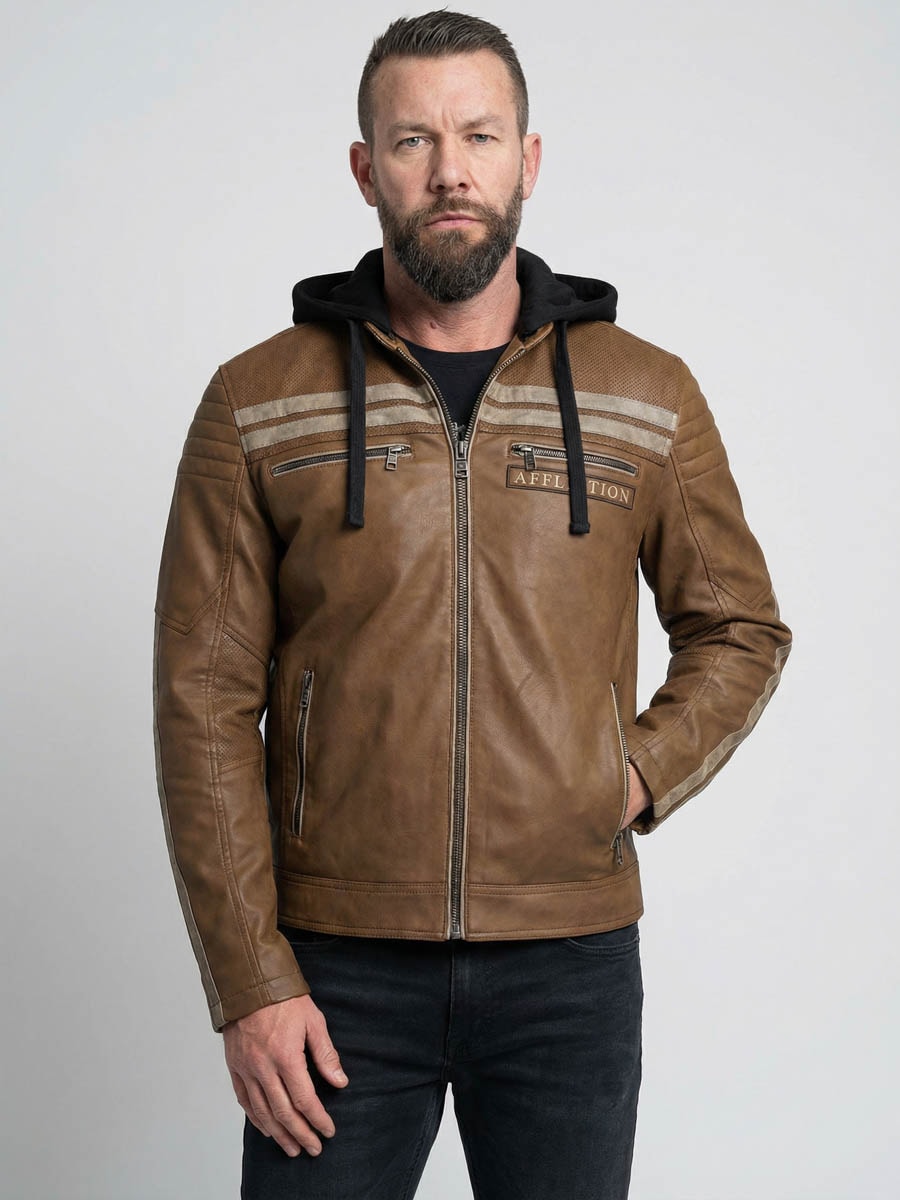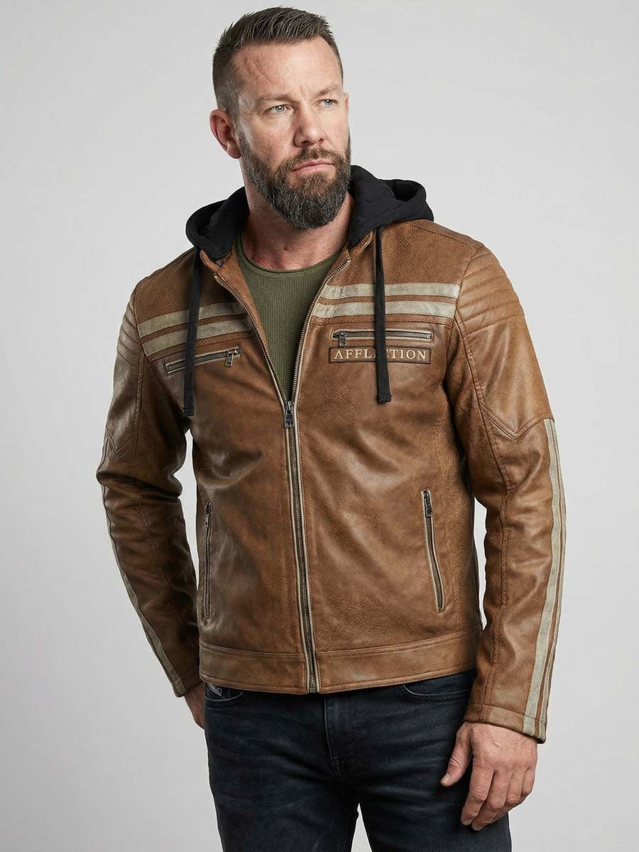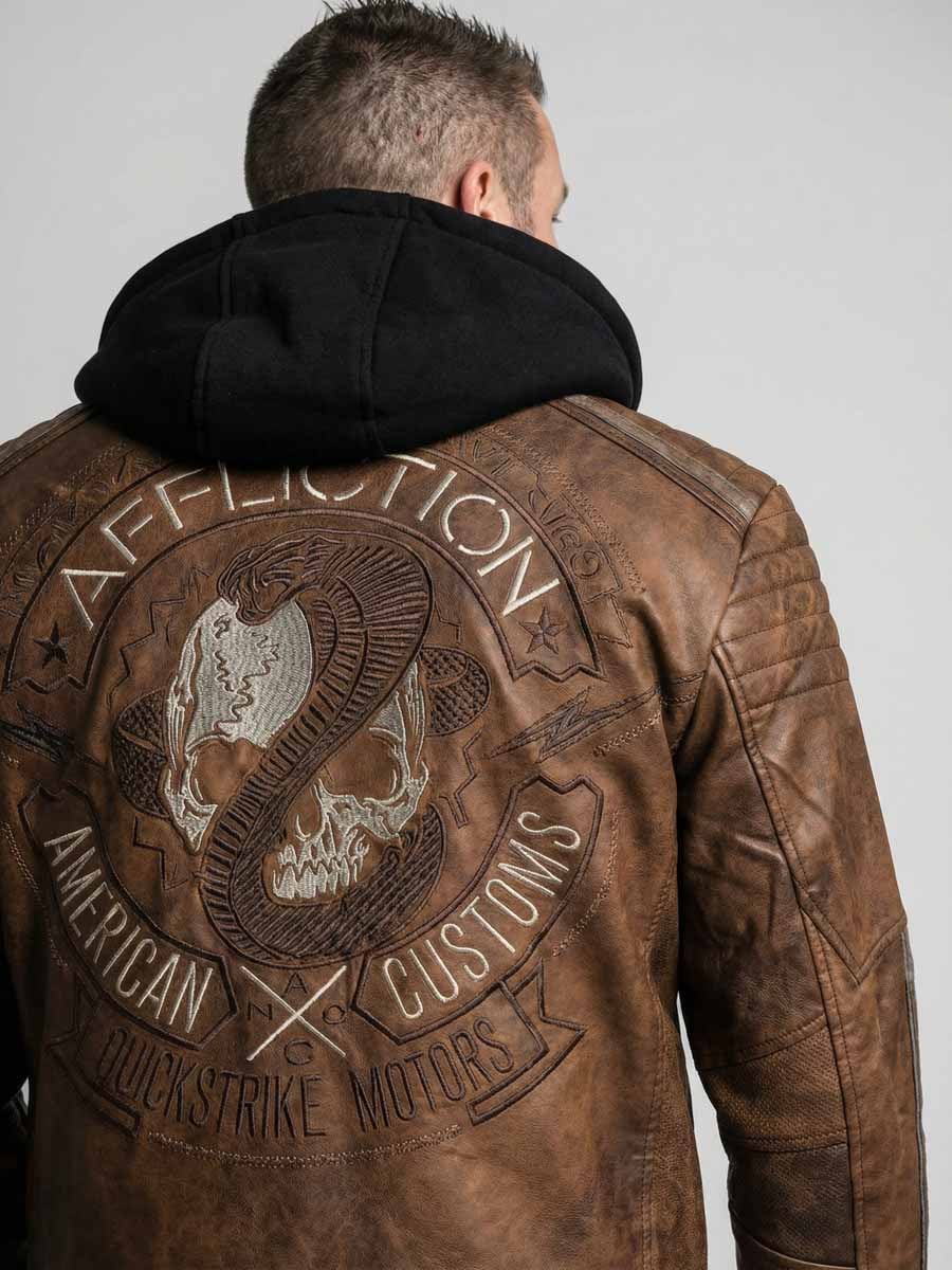 Læderjakke med hætte fra Affliction