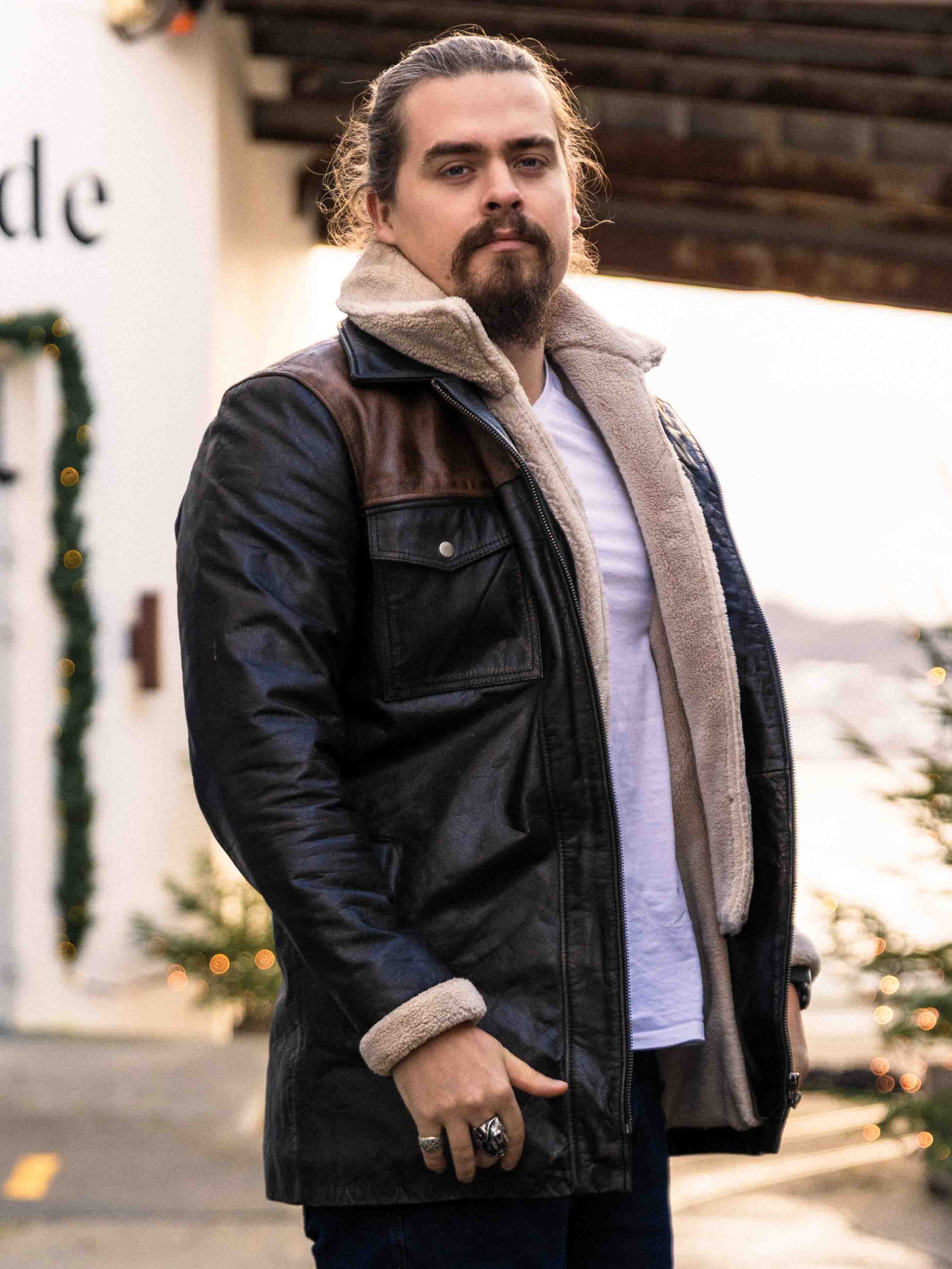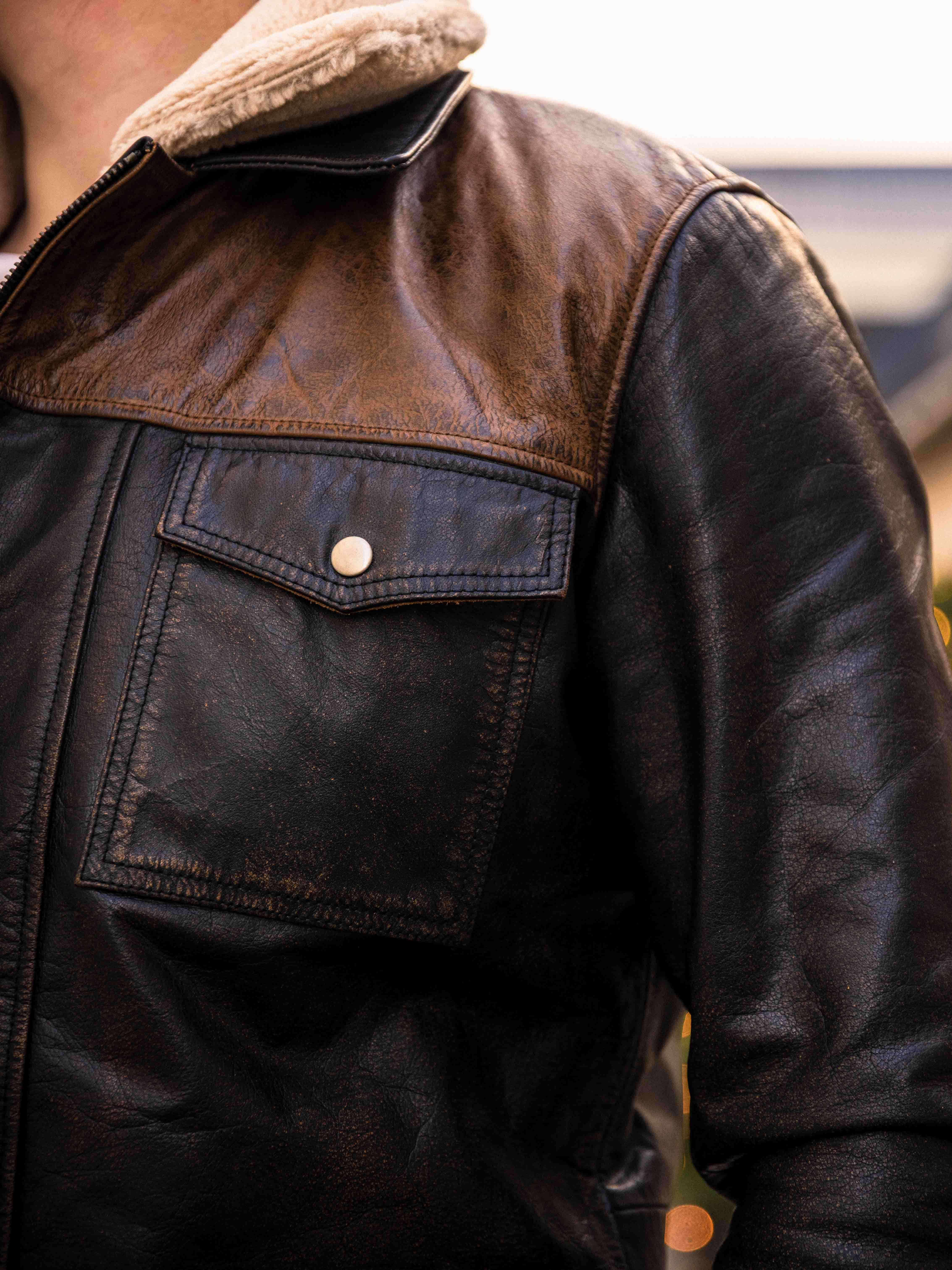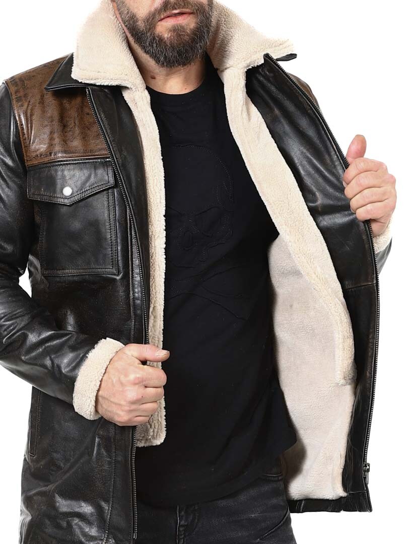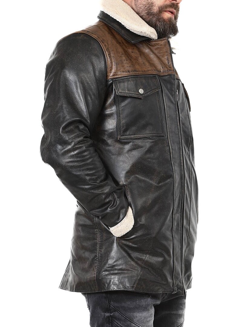Robust og kraftfuld jakke i ægte bøffellæder med et design, der udstråler selvtillid og attitude. Kombinationen af sort læder og kontrasterende brune skulderpartier giver et markant og stilfuldt udtryk. Indersiden er foret med varmt teddyfor, som giver komfort og varme på kolde dage. Jakken har flere praktiske lommer og en aftagelig teddykrave, så du nemt kan variere dit look efter vejr og stil. En jakke til manden, der kræver stil, styrke og holdbar kvalitet – eksklusivt hos RockDenim!