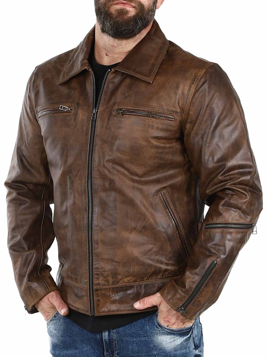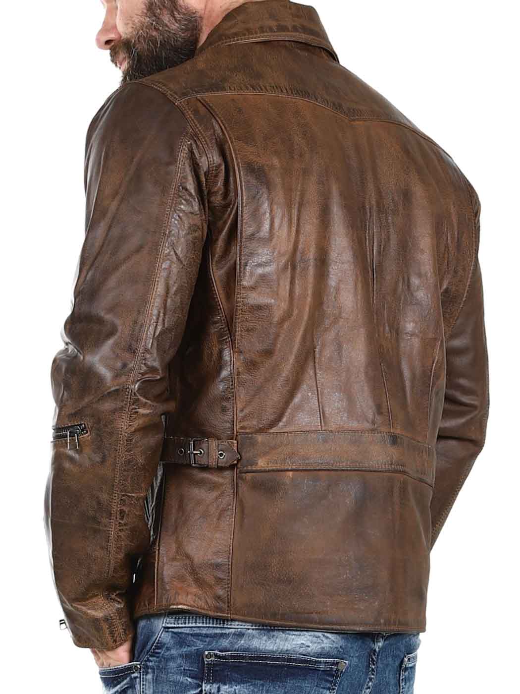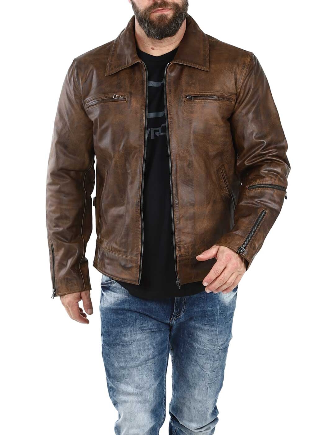 Stærk og tung jakke i ægte læder. Den er designet med en krave og en justerbar talje samt kanter for enden af ærmerne. Der findes fire lommer fortil, en lomme på armen og to lommer indvendigt. Denne jakke er perfekt til dig, der ønsker en tidløs jakke i en god kvalitet!