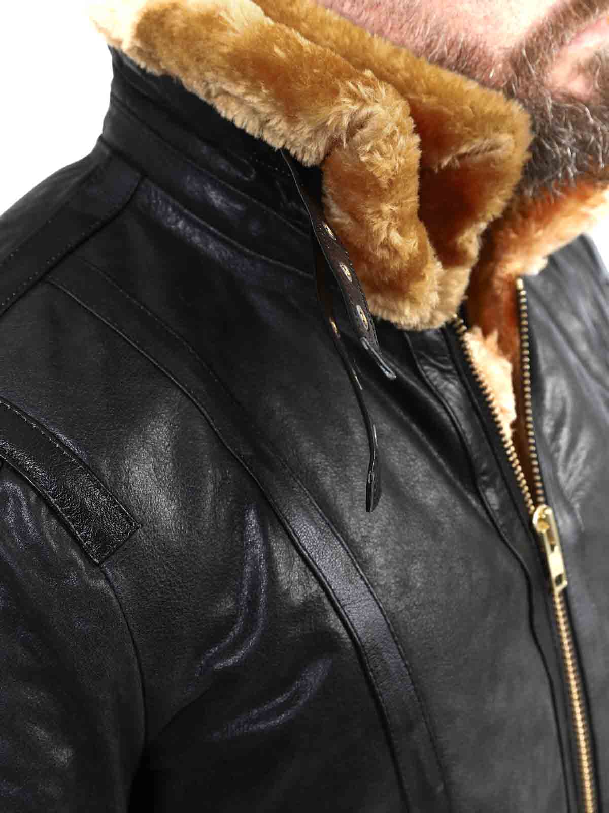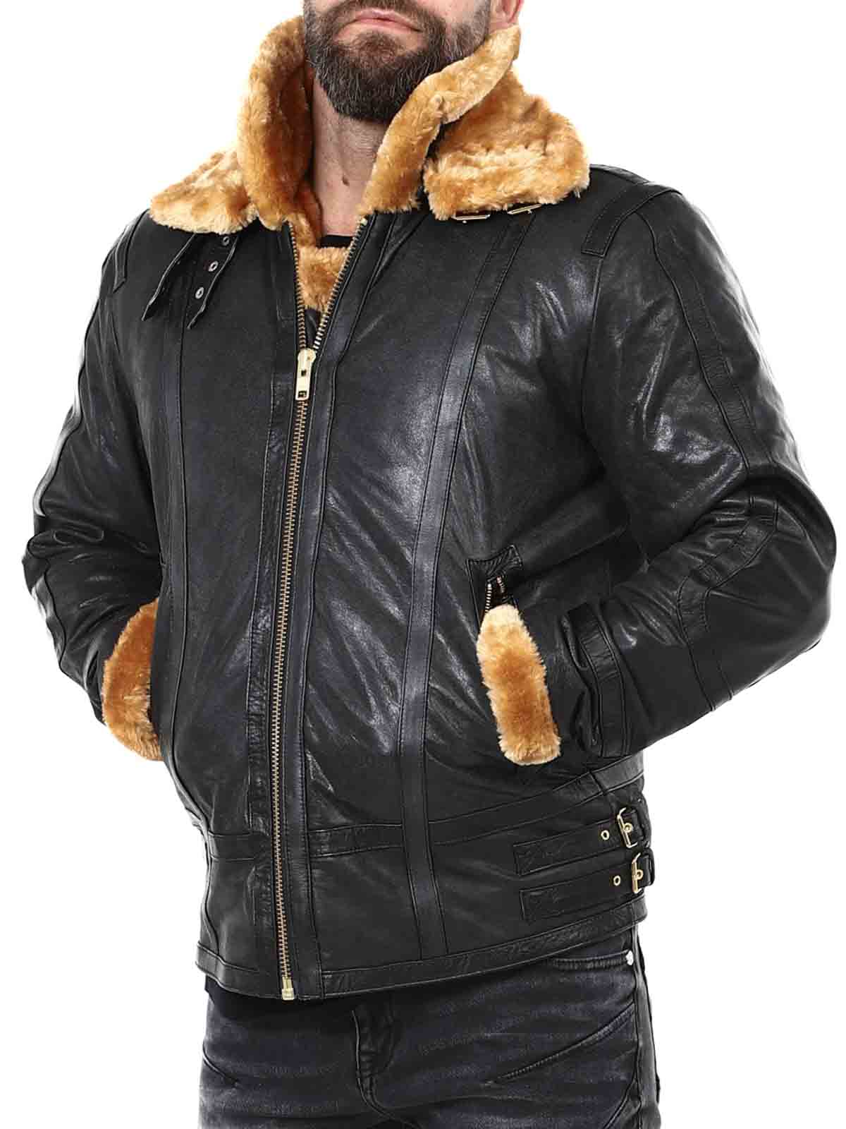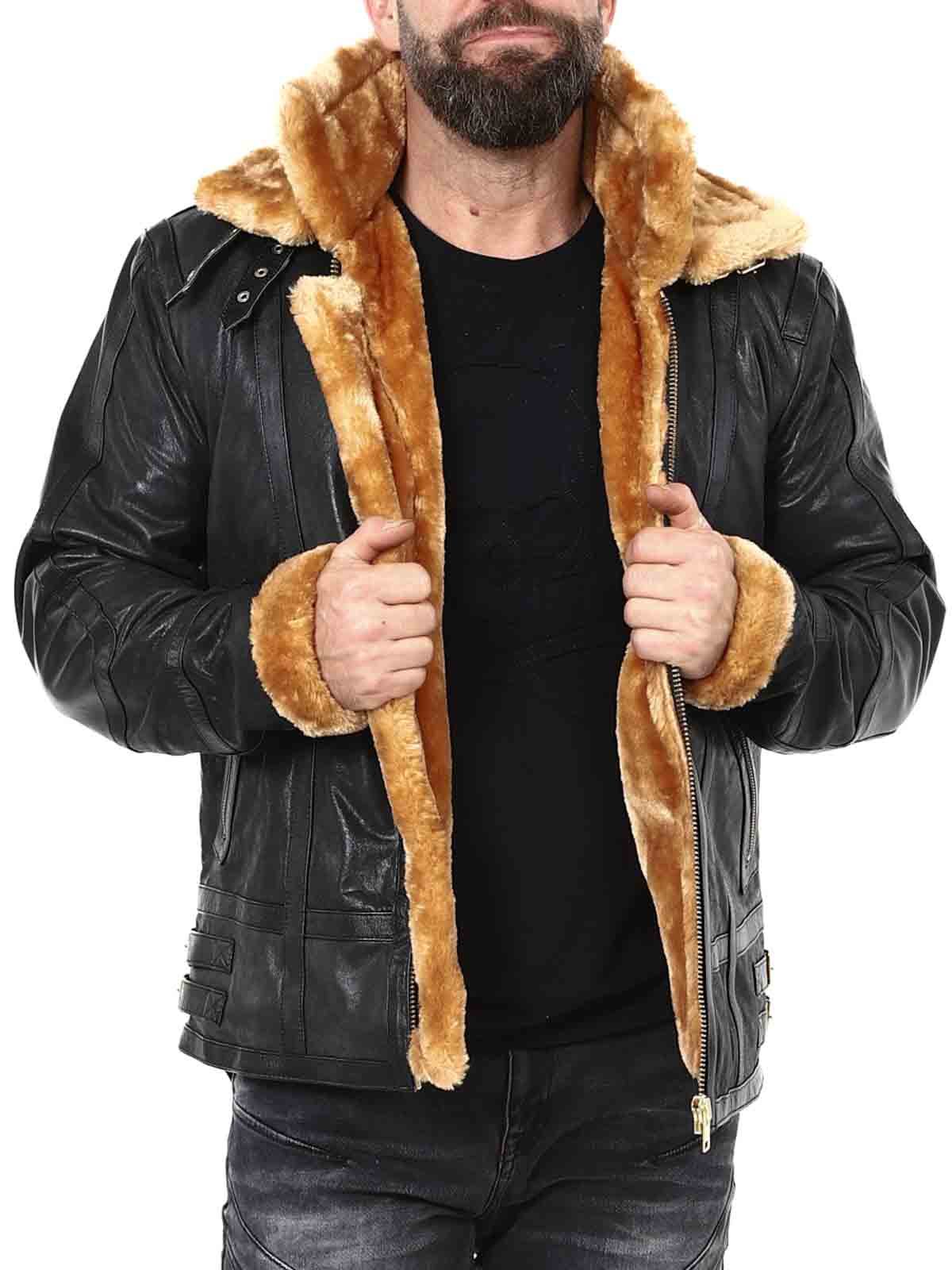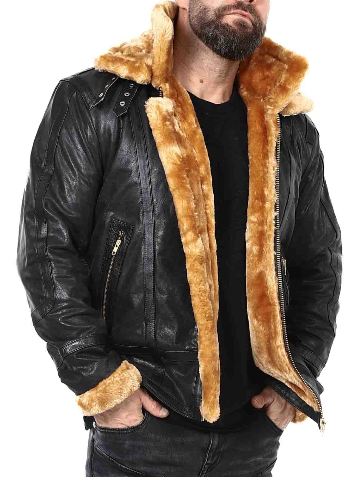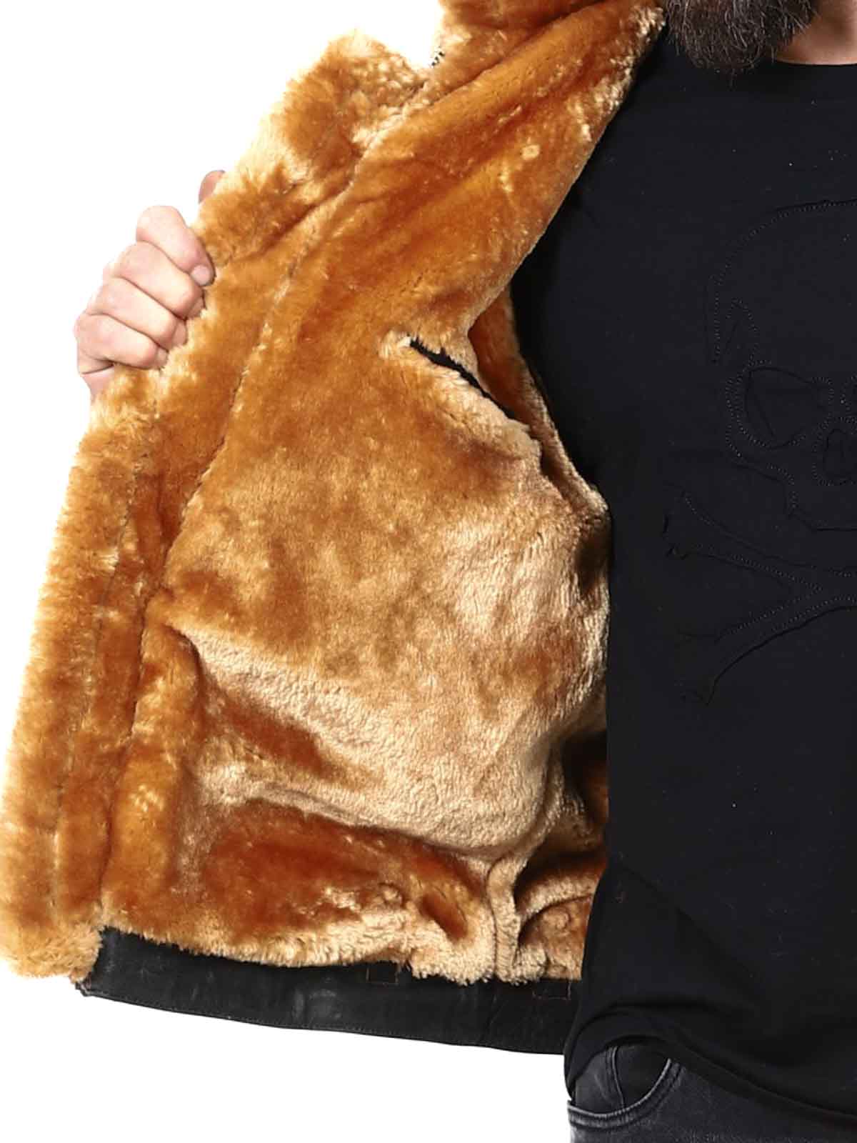 En ikonisk og kraftfuld jakke i ægte bøffellæder, skabt til manden der stiller krav til både stil og holdbar kvalitet. Den robuste læderoverflade kombineres med blød pelsimitation langs hele indersiden, som giver ordentlig varme på kolde dage. Jakken har også dobbelte pelskraver – hvoraf den yderste er aftagelig, så du nemt kan tilpasse looket efter vejr og anledning. Udstyret med lukkelige lommer og justerbare spænder. En jakke med karakter – til dig, der ikke nøjes med mindre end det bedste. Kun hos RockDenim!