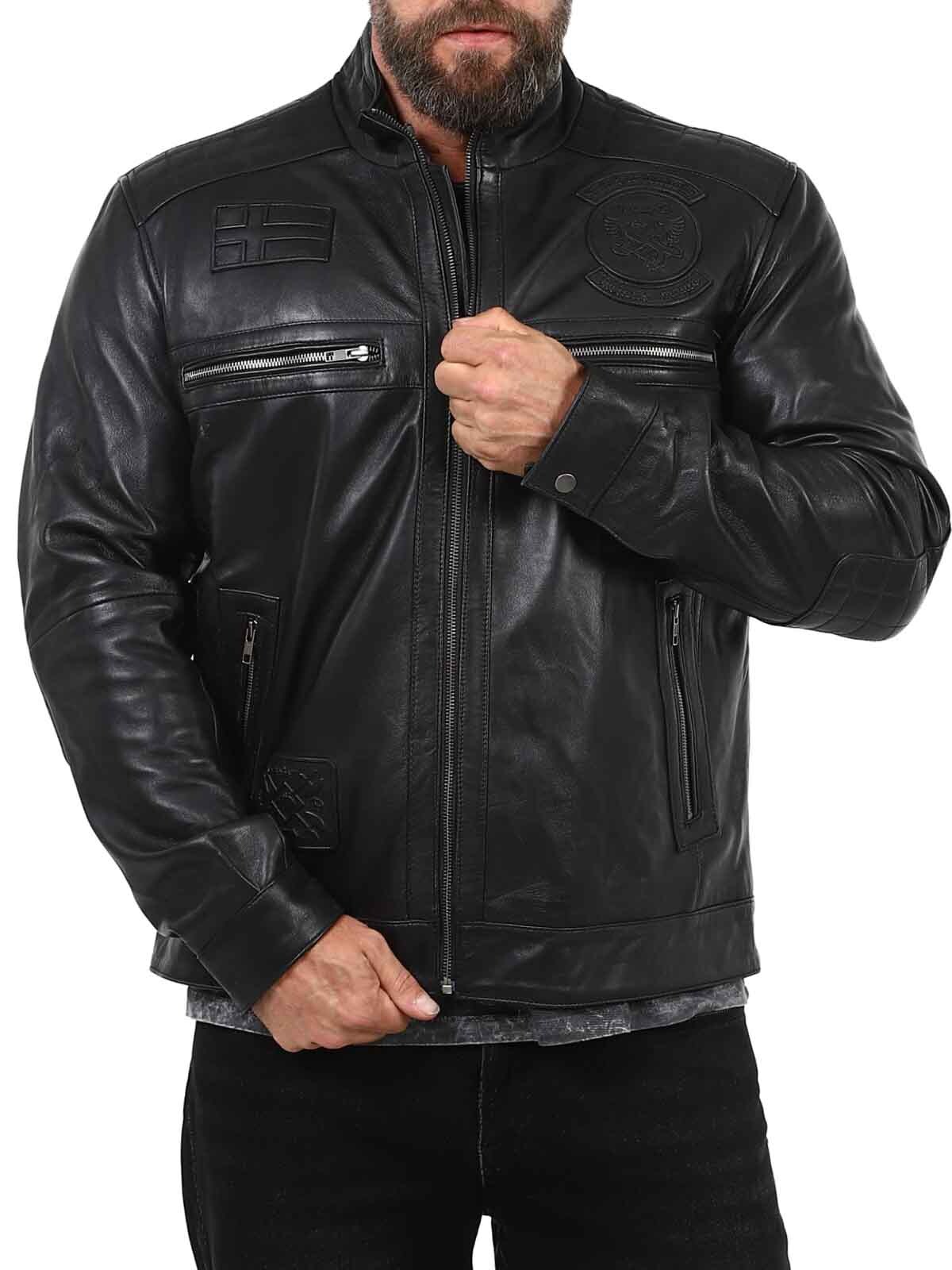 Denne elegante og robuste læderjakke er lavet af ægte fåreskind, som giver en blød og smidig fornemmelse samtidig med, at den holder en holdbar kvalitet. Jakken har en stilfuld ståkrave, broderede detaljer og flere praktiske lommer med lynlåse til både funktion og stil. Den er velegnet til dem, der ønsker et moderne og maskulint udseende med et strejf af attitude!