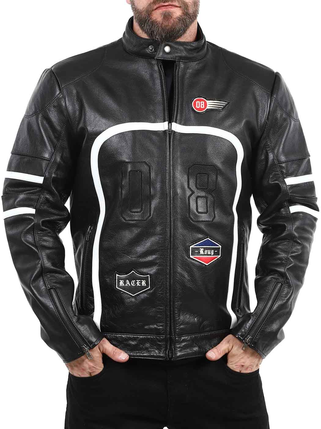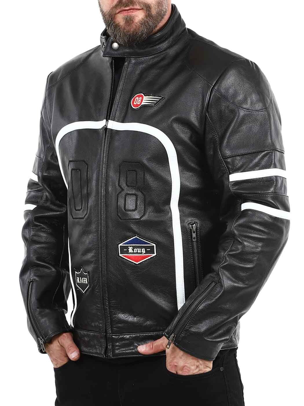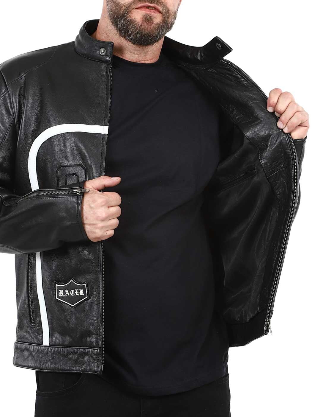 Gør et stærkt indtryk med denne sorte biker-inspirerede jakke, designet til at kombinere stil med attitude. Jakken har en opretstående krave med trykknap, to lommer på maven, der begge kan lukkes og to indvendige lommer. Du finder kun denne jakke hos Rockdenim!