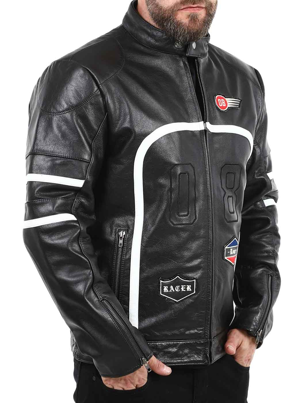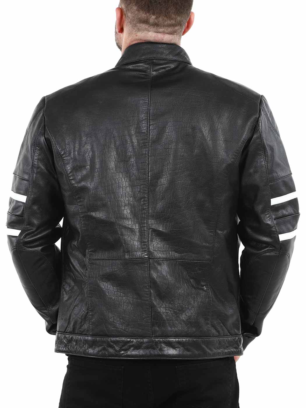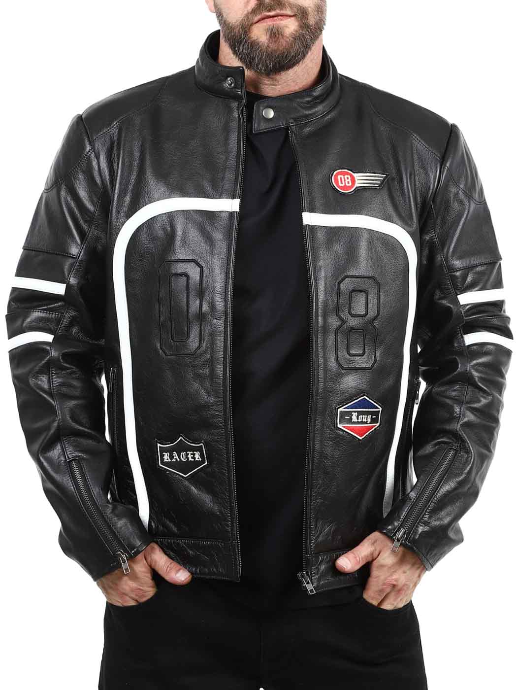 Gør et stærkt indtryk med denne sorte biker-inspirerede jakke, designet til at kombinere stil med attitude. Jakken har en opretstående krave med trykknap, to lommer på maven, der begge kan lukkes og to indvendige lommer. Du finder kun denne jakke hos Rockdenim!