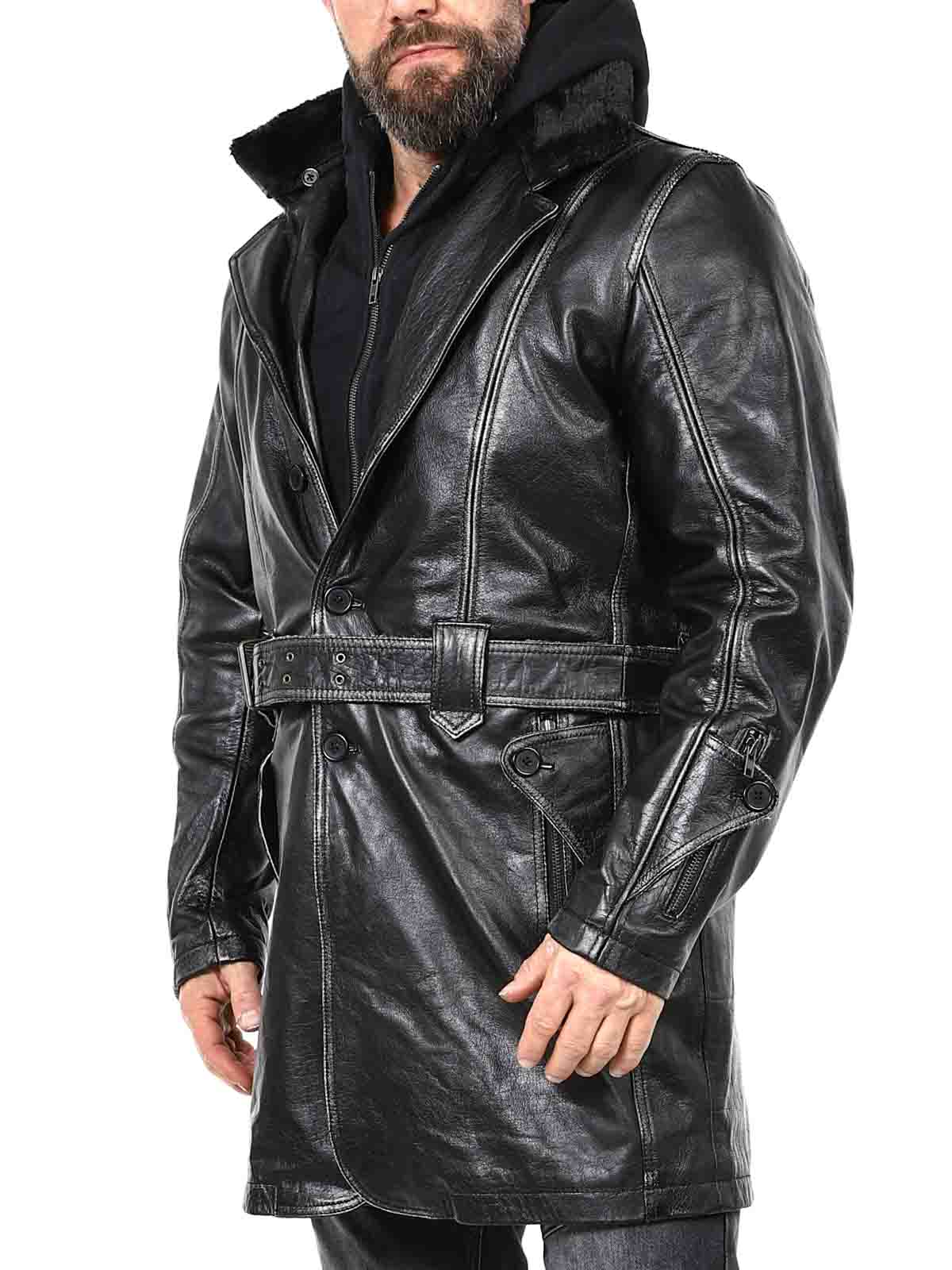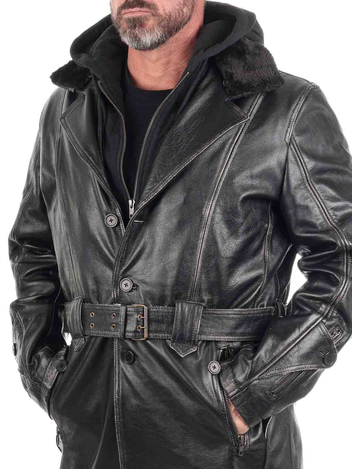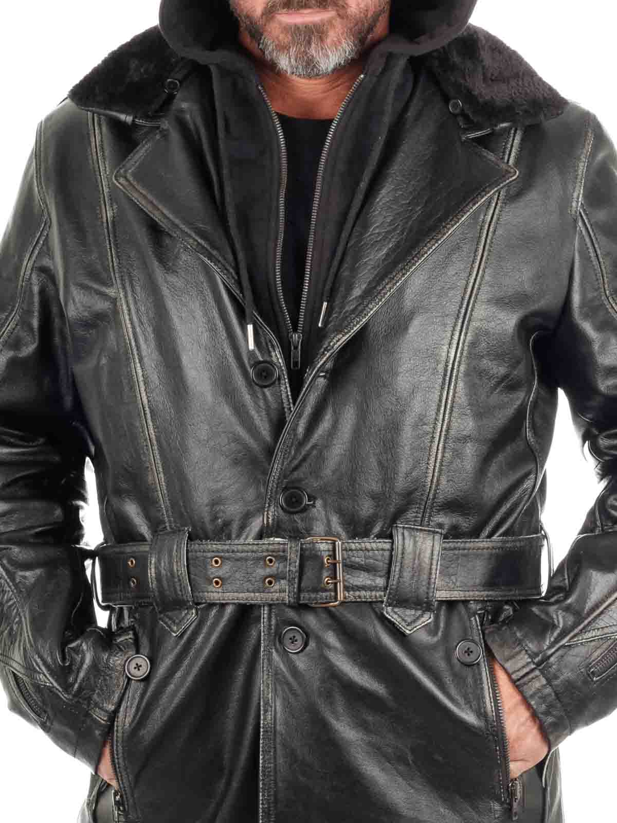 En kraftfuld jakke i ægte bøffellæder – skabt til manden, der sætter pris på både stil og kvalitet. Det lange design og det robuste læder giver en stærk, maskulin silhuet med markant karakter. Jakken har en aftagelig sweatshirt-del foran med hætte, som giver mulighed for at skifte mellem et råt biker-look og en mere afslappet hverdagsstil. Indersiden har et aftageligt teddyfor, som holder dig varm på kolde dage og nemt kan fjernes, når vejret bliver mildere. Udstyret med flere lynlåslommer samt praktiske inderlommer.