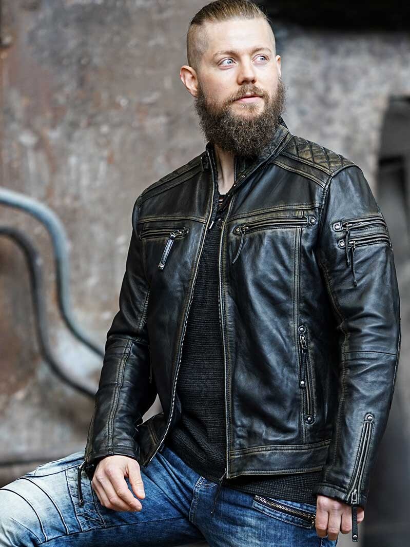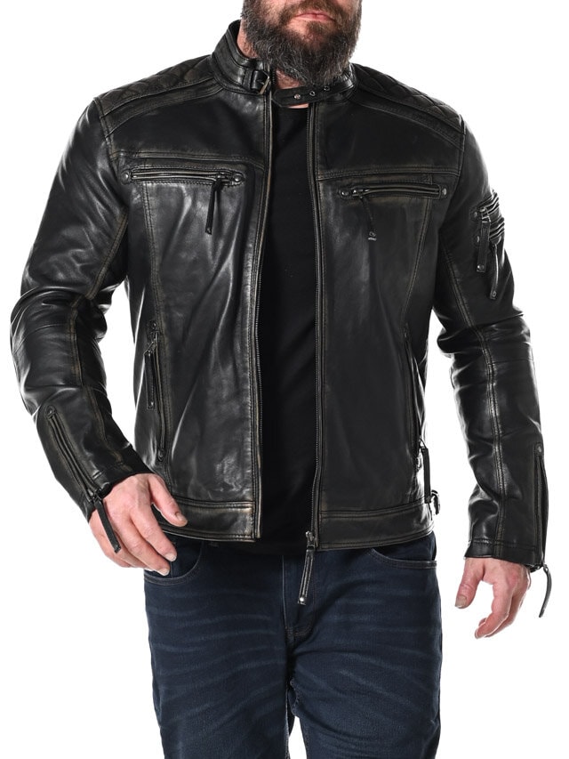 Jakke i en læder med et slidt look, der er med til at give den et cool udseende. Den har polstrede partier og justérbare ærmeåbninger, samt en linning der også kan justeres.