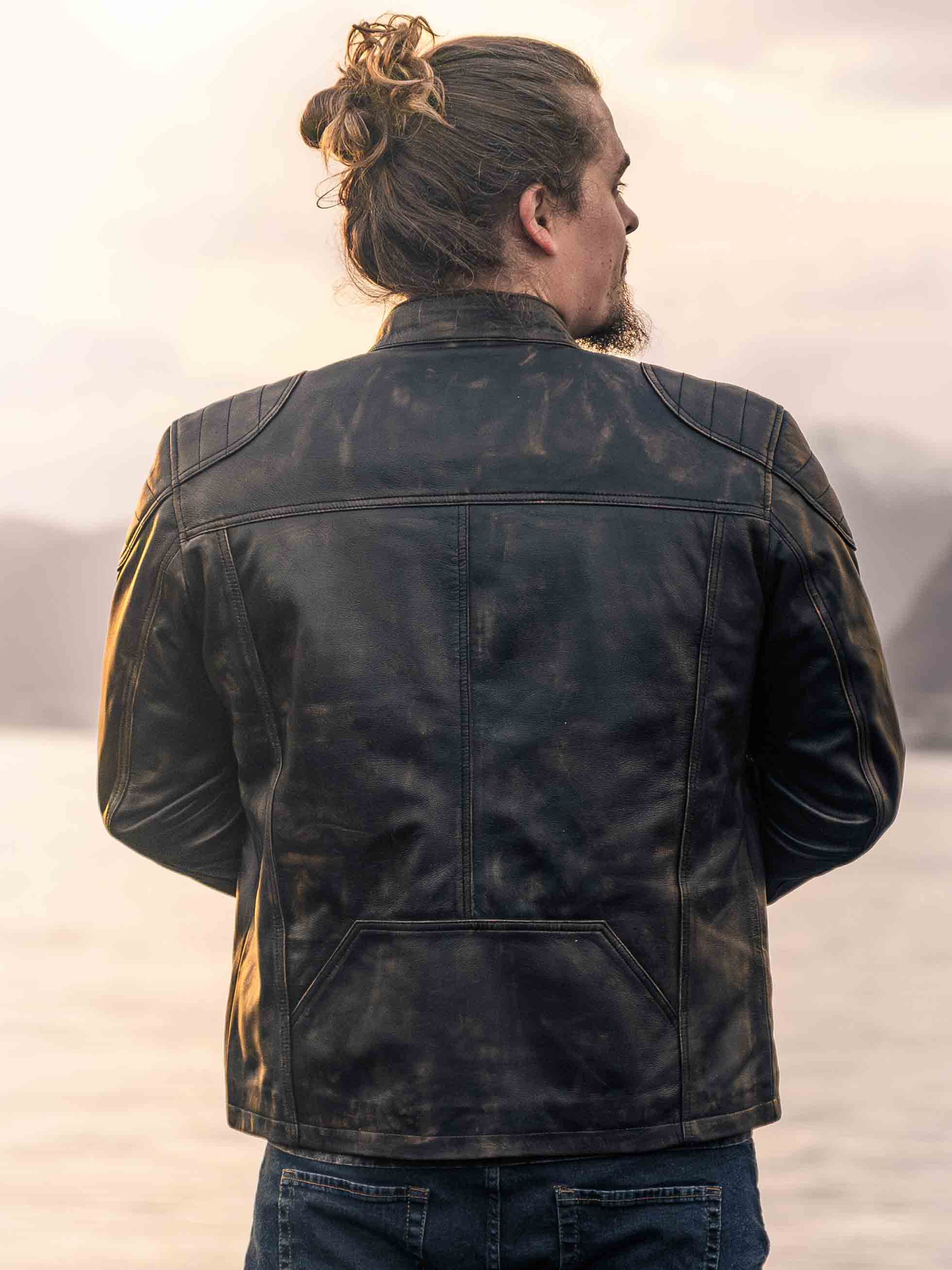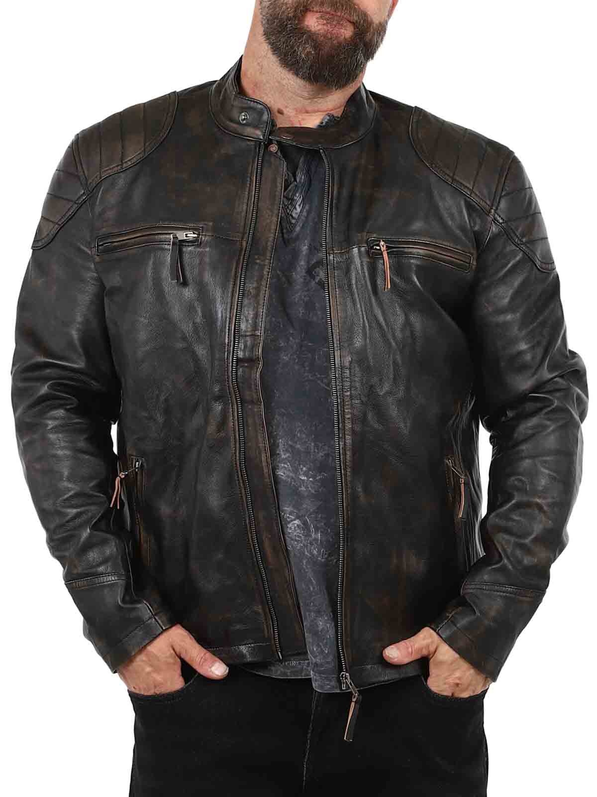 Jacke i kvalitetslæder med en stilfuld, vintage brun nuance. Den har justerbare kanter ved ærmerne, forstærkede skuldre og fire lommer fortil, der kan lukkes, samt to indvendige lommer. Giv din garderobe en opgradering med denne stilfulde læderjakke, der kun er tilgængelig hos RockDenim!