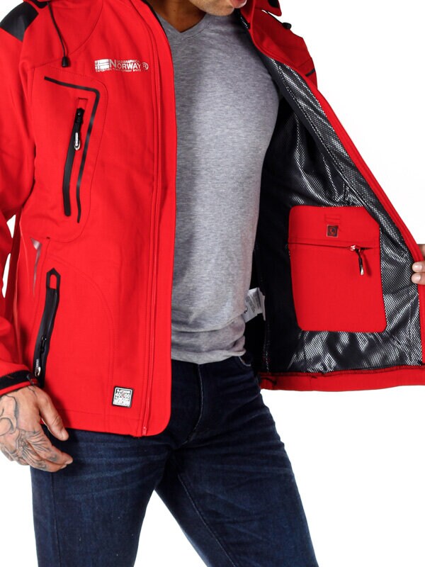 Brugbar jakke til alle aktiviteter, hvor der kræves et vindtæt samt et vandafvisende materiale. Jakken består af et tyndt fór i fleece, tapede sømme og godt med lommer, der er med til at gøre jakken praktisk og perfekt at bære under forår, sommer samt efterår. Den har et rød design med fire lommer fortil, der alle kan lukkes. Hertil kommer to lommer inderst inde, som begge har lynlås samt en aftagelig hætte.