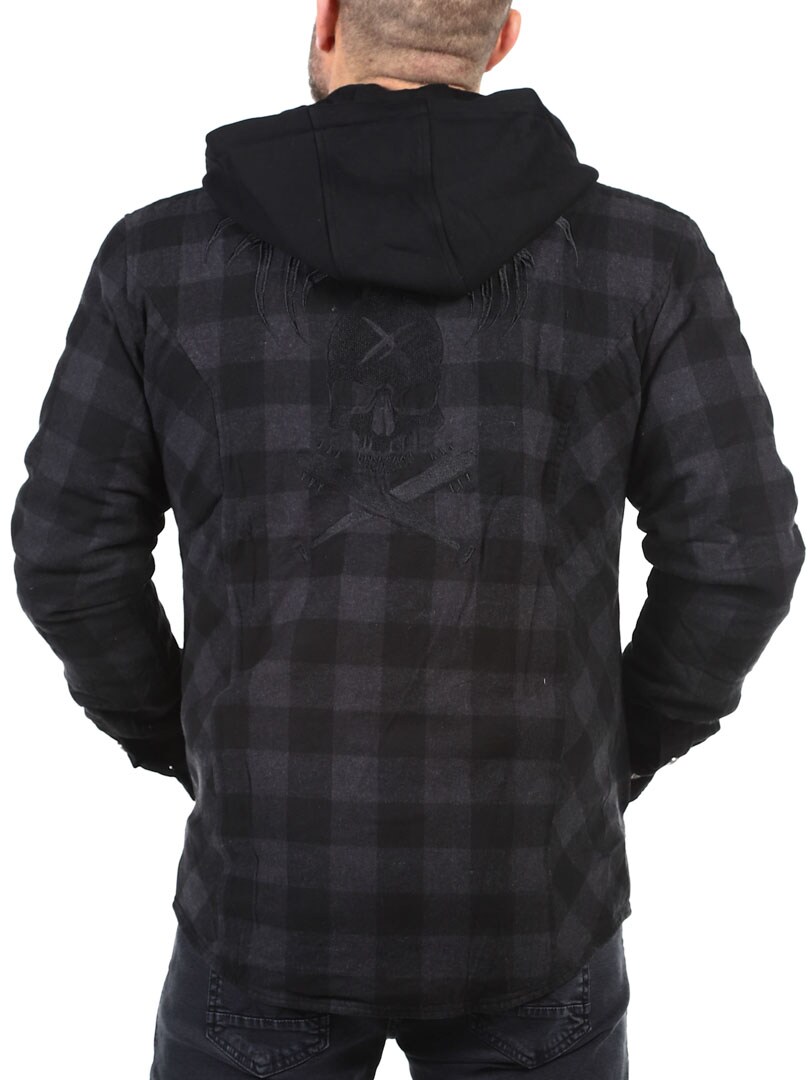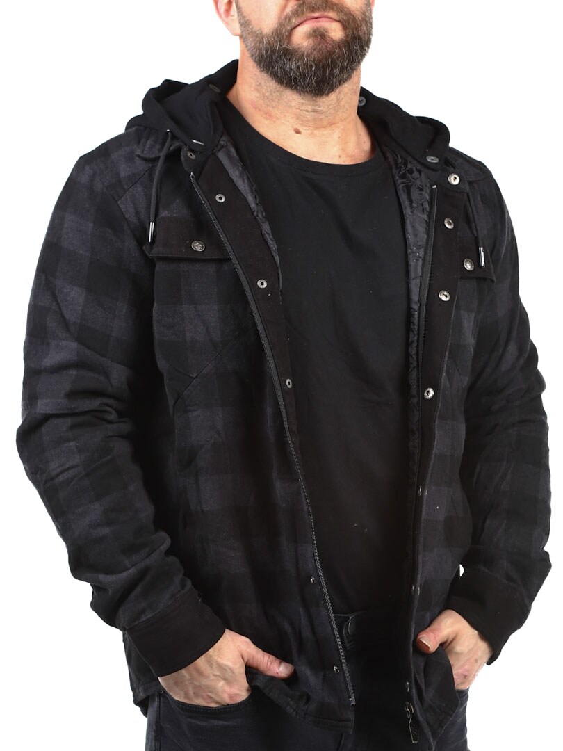 Let foret jakke i ternet flannel med en aftagelig hætte i et sweatshirtmateriale. Den er designet i en tidløs farve med knaplukning og fire praktiske lommer fortil. Et fastsyet tryk bagpå giver jakken mere attitude!