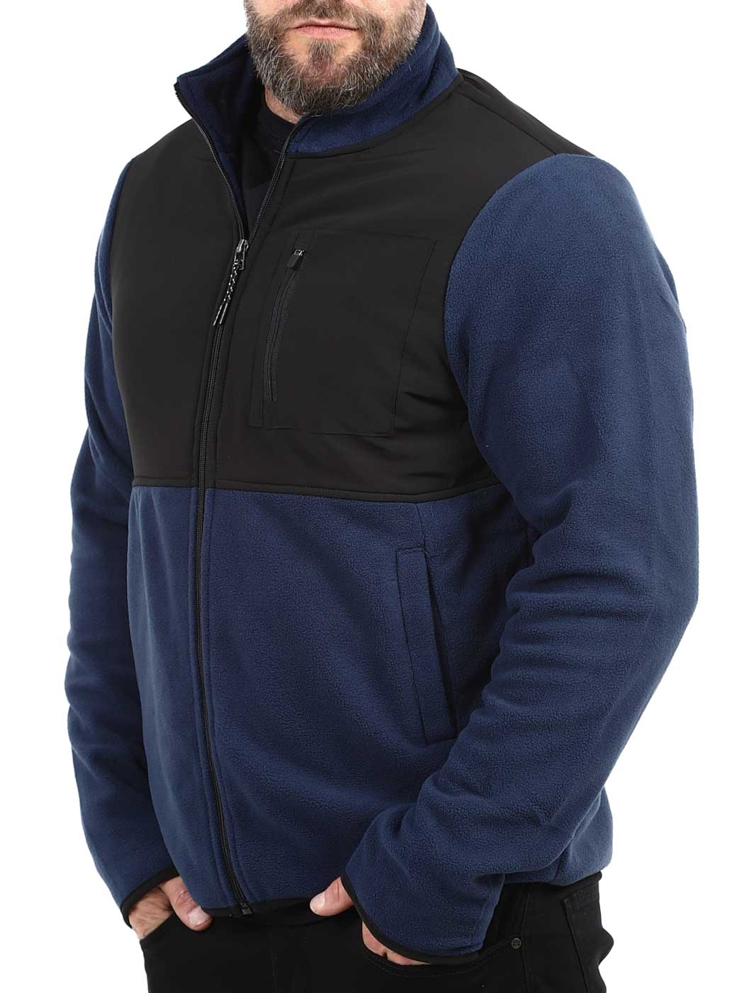 En praktisk og stilfuld fleecejakke, der kombinerer funktion og komfort. Jakken har krave, to åbne lommer på maven og en lukbar lomme på brystet.