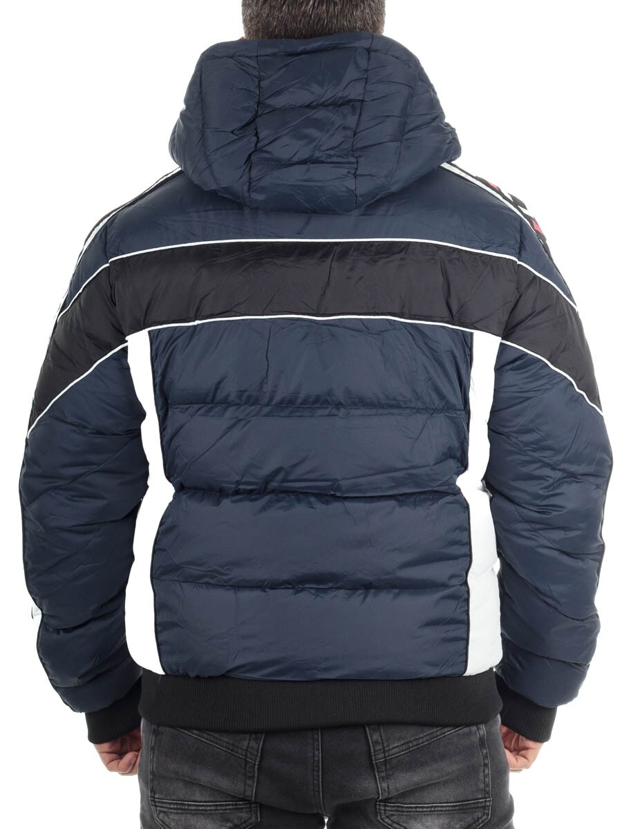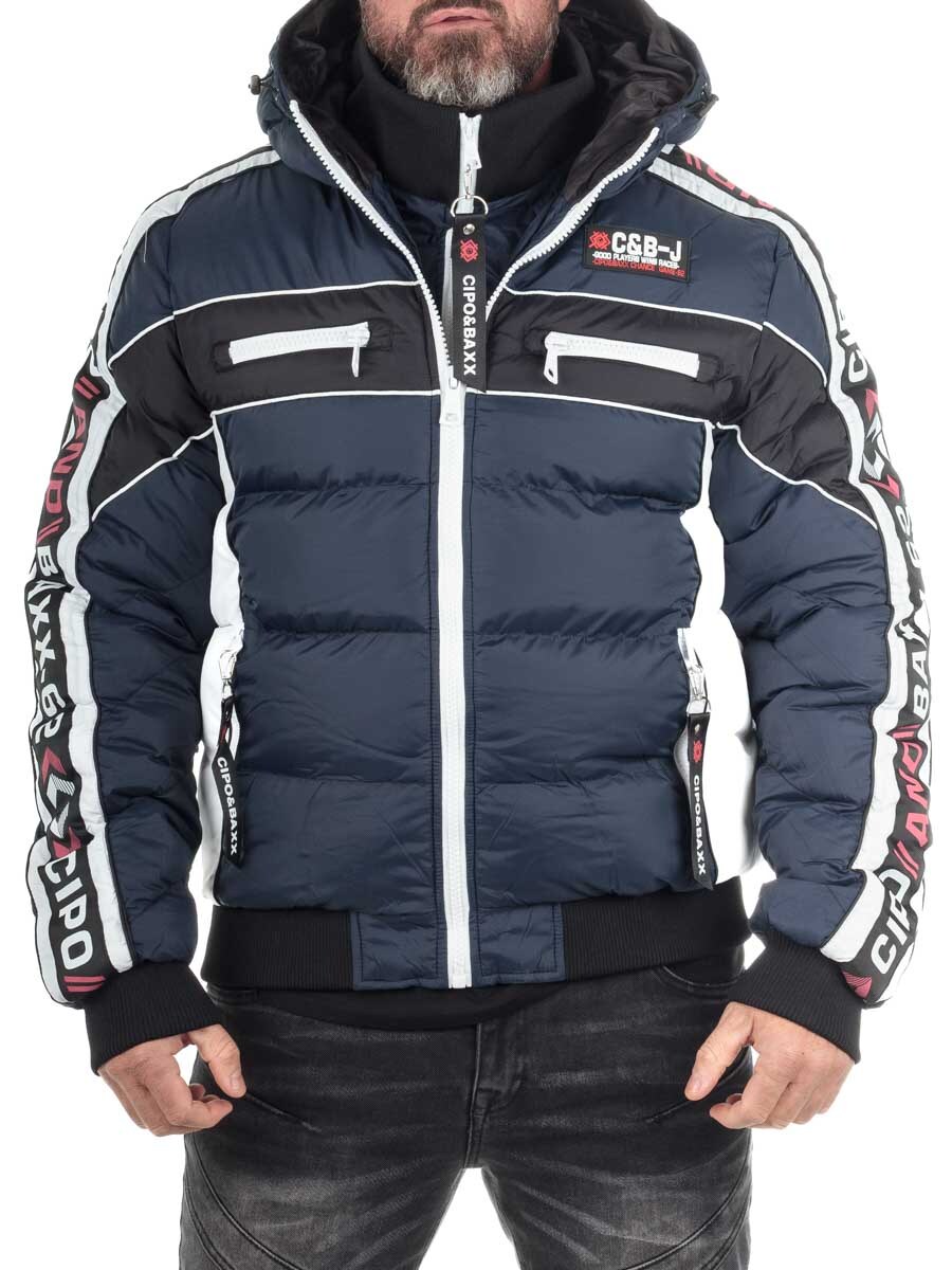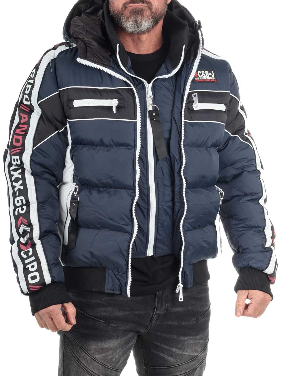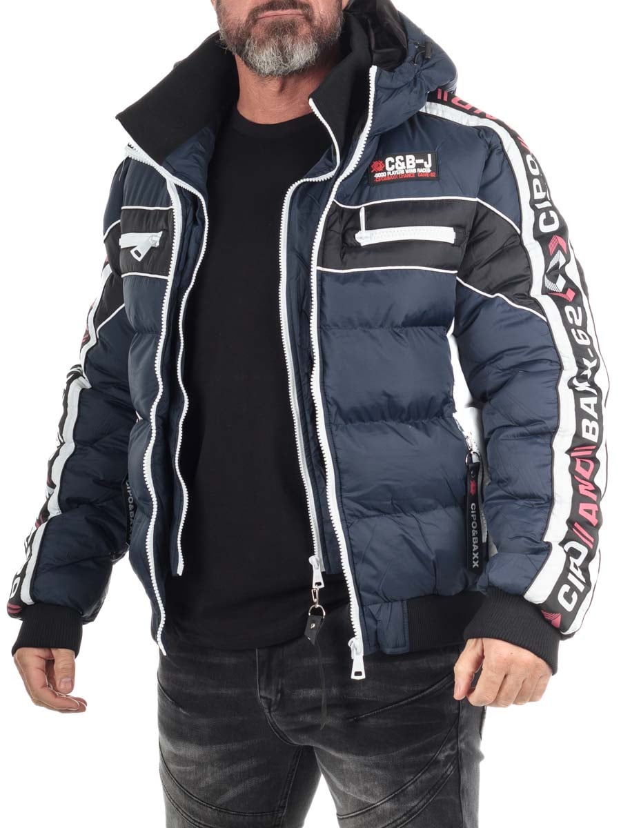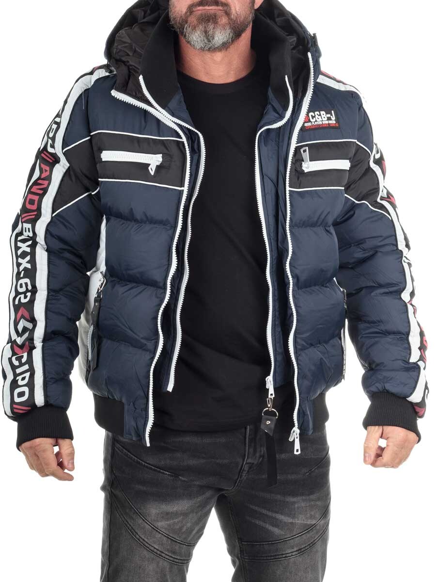 Cipo & Baxx Elaris Pufferjakke i mørkeblå er en distinkt og funktionel herrejakke, perfekt til den sporty-urbane stil.