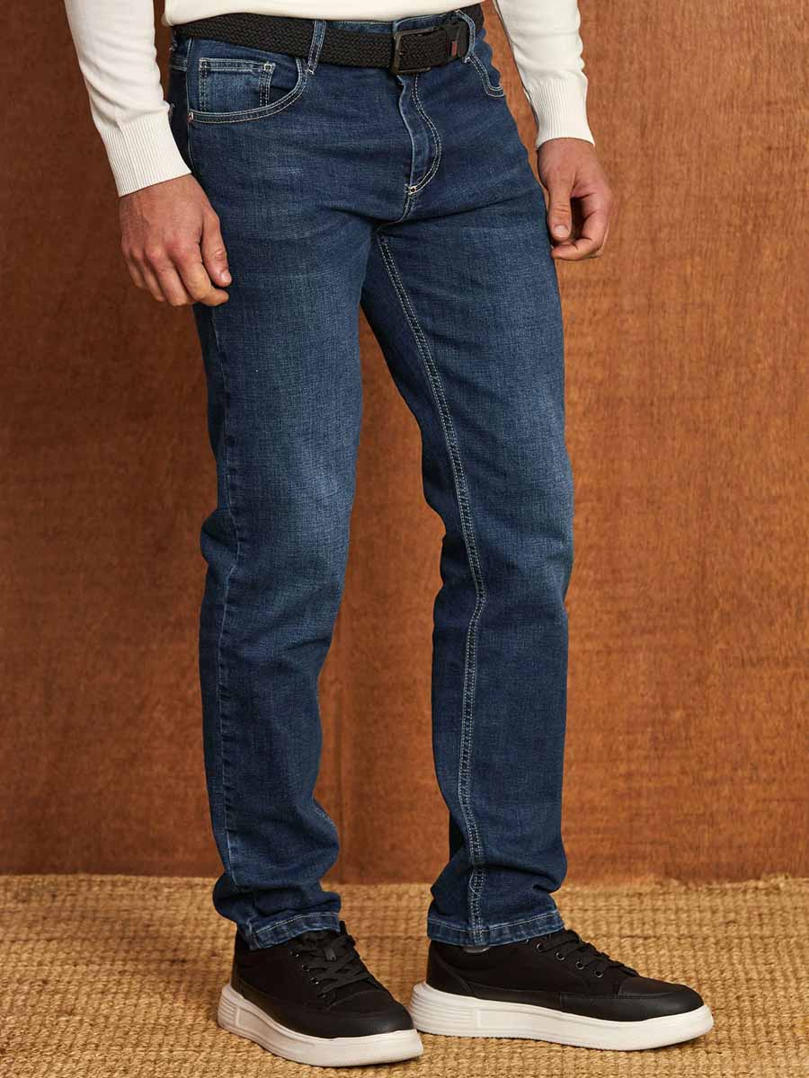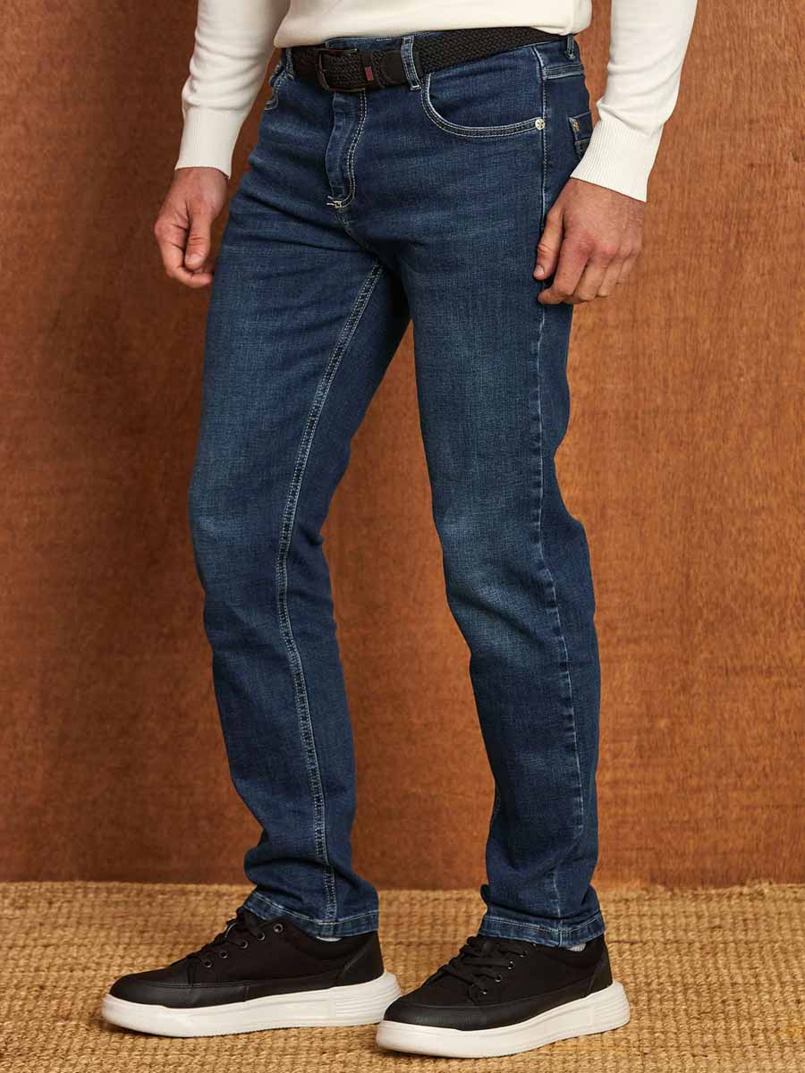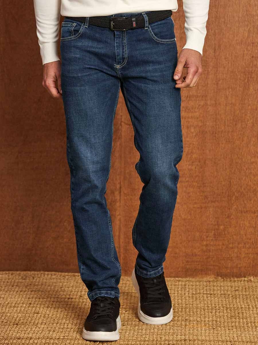Tidløse jeans med lige pasform, som giver et afslappet, men velklædt udtryk. Det klassiske 5-lommers design kombineres med stretchmateriale, der følger kroppens bevægelser og giver komfort hele dagen. Et oplagt basisitem, der fungerer både til hverdagsbrug og mere formelle anledninger!