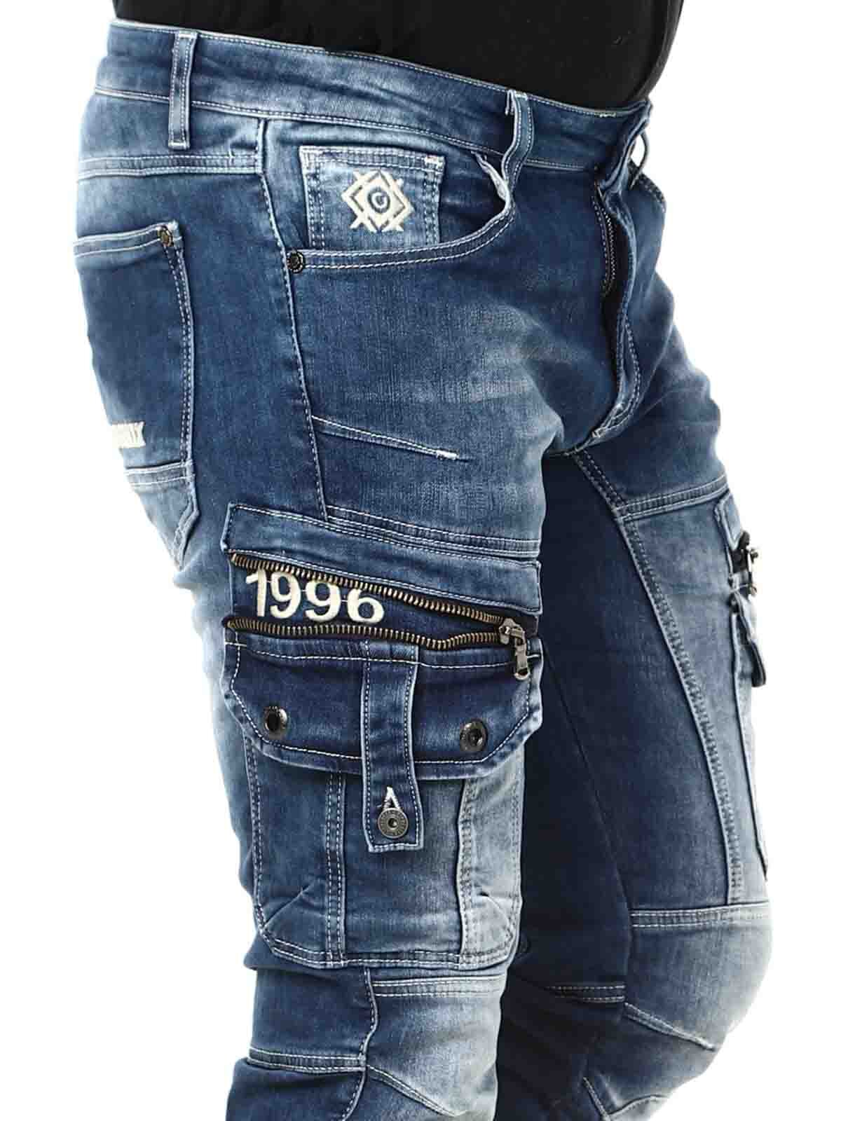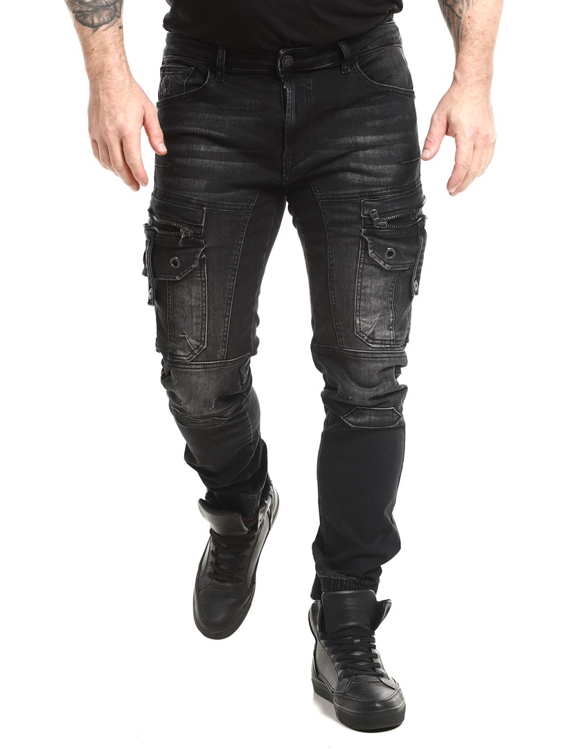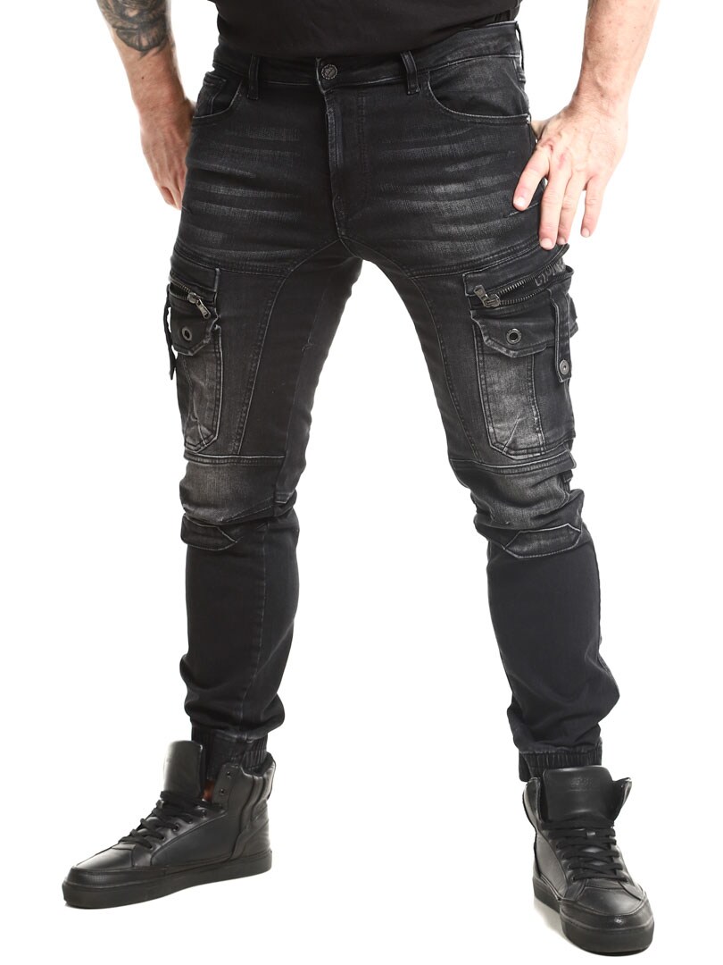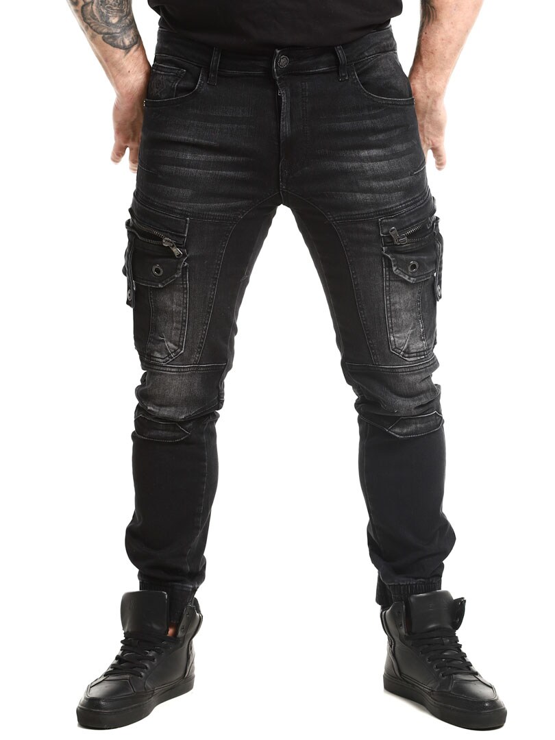 Stenvaskede bukser i denim. De er designede med joggingbuksernes komfort, samtidig som de har det samme cool udseende som jeans. Bukserne har flere lommer og en elastisk kant for enden af benene.