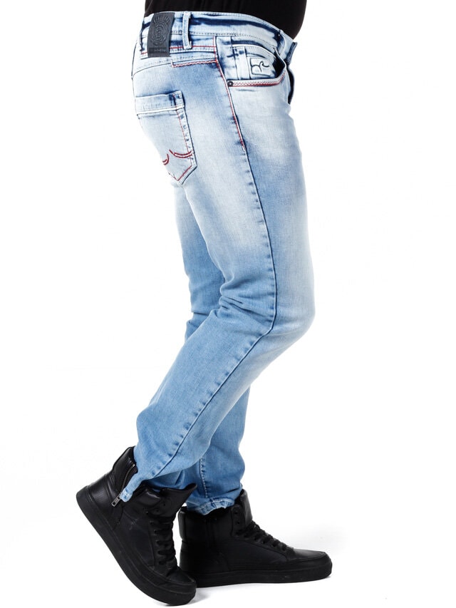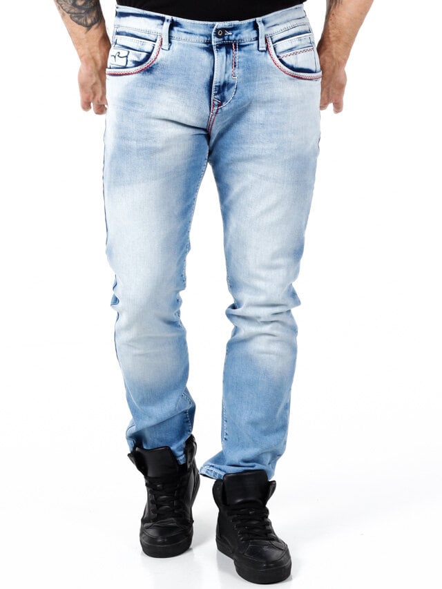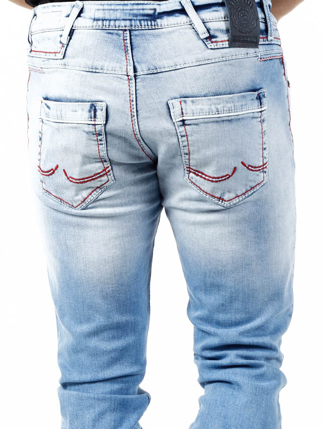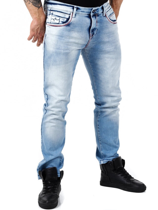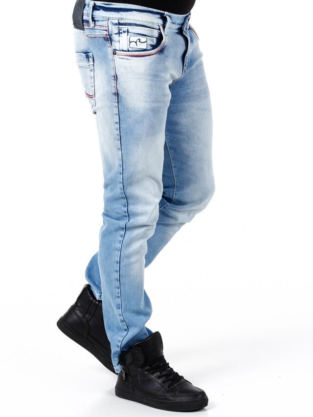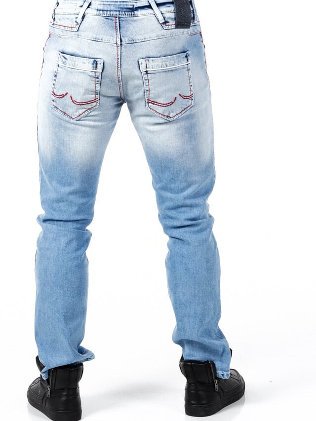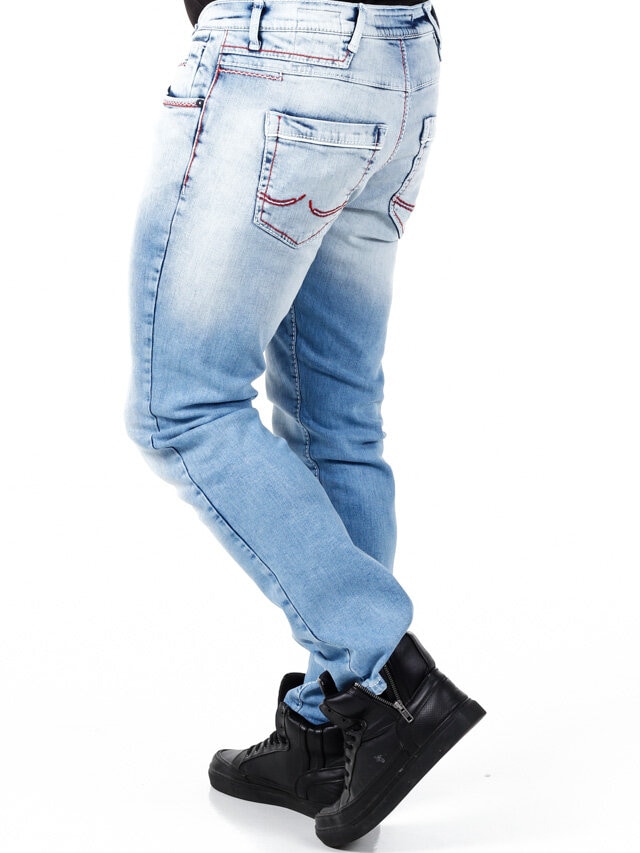 Dejlige bukser i denim med grove sømme i kontrastfarver. Dette er en elastisk model med en klassisk pasform. Der findes seks lommer fortil og to lommer bagpå.