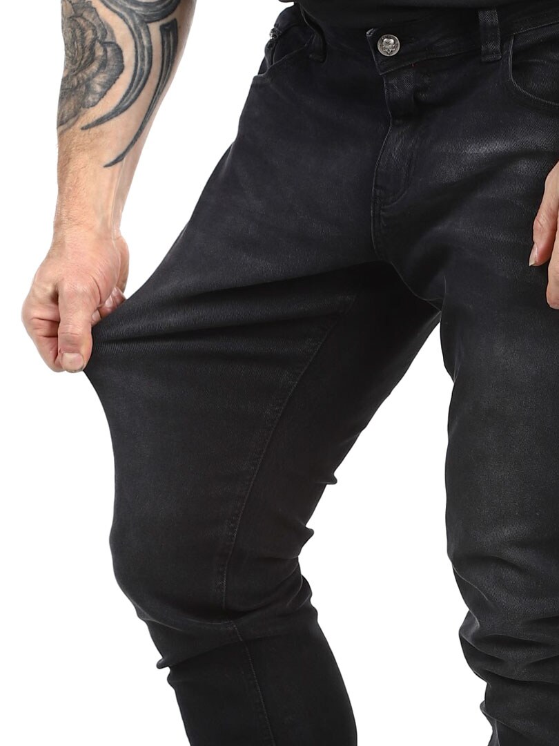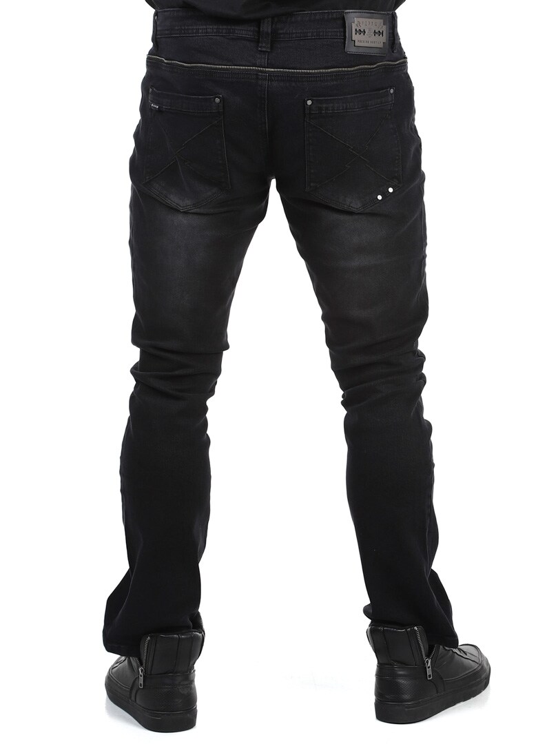 Jeans i slim straight fit - slank pasform med lige ben. Elastisk og behagelig model med fire lommer fortil og to lommer bagpå. De er designede med en dekorativ lynlås bagtil der giver et edgy touch!
