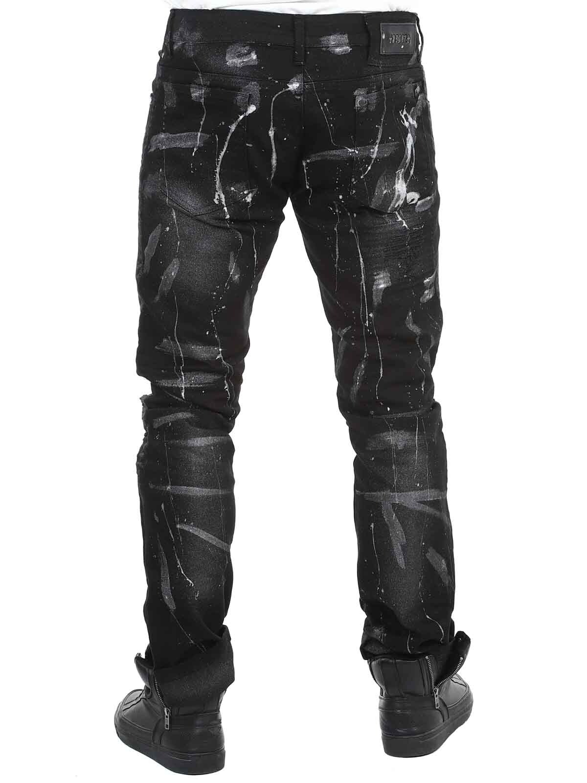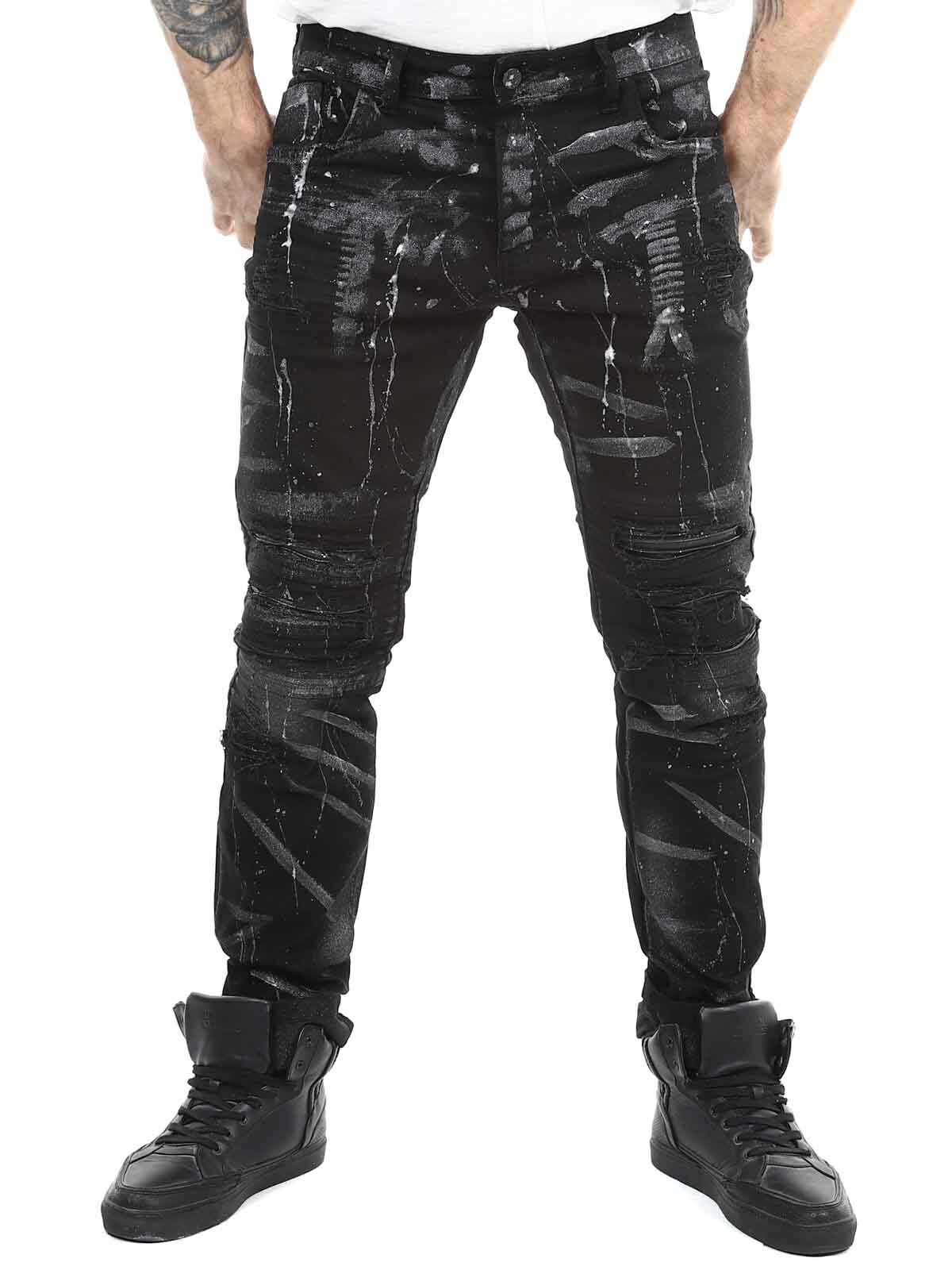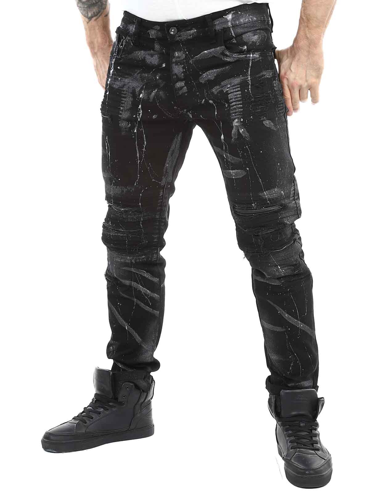 Jeans i en behagelig og stretchy denim. De er cool designet med rifter i et imiteret læder og malede effekter. Fem-lommers model med stropper til bæltet og en lap i linningen bagpå. Jeans skabt til at give dit outfit en fræk og unik kant!
