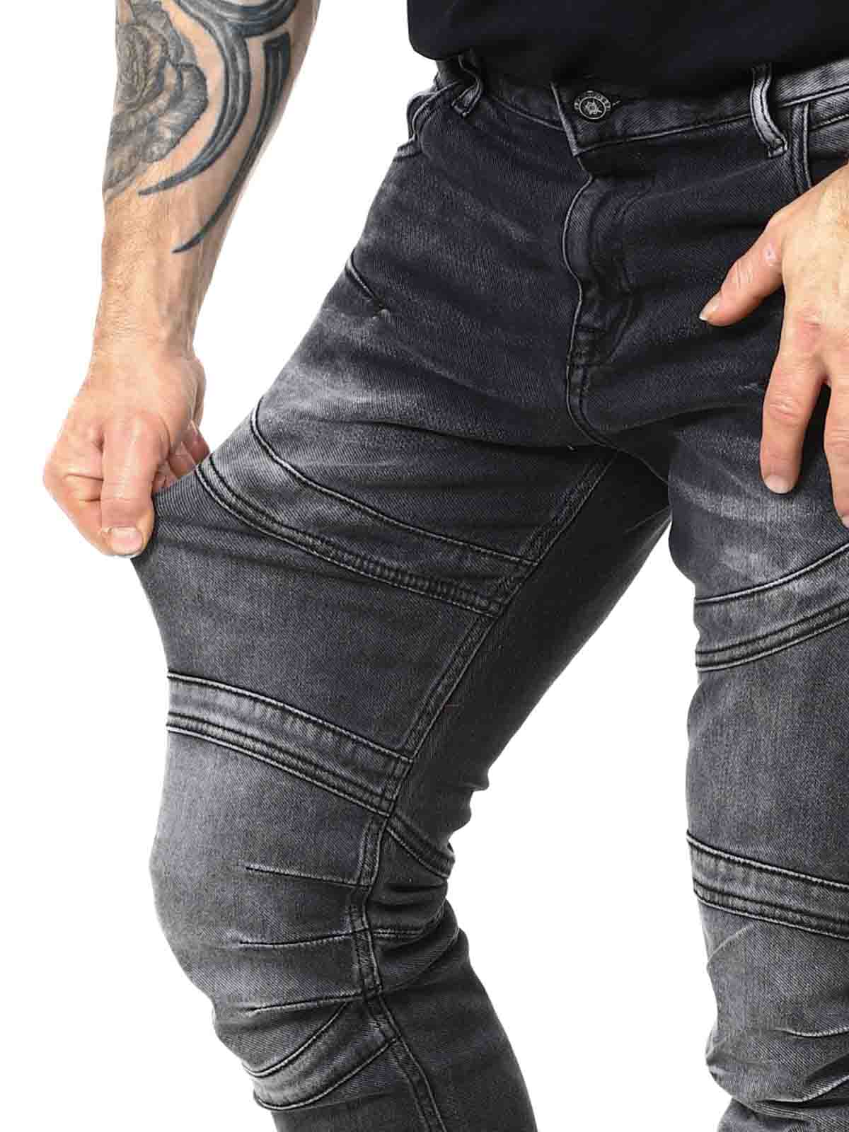 Stenvaskede jeans med grove sømme der er med til at forhøje designet. Den er fremstillet i en blød og fleksibel denim der former sig efter kroppen, og som giver en perfekt pasform uden at gå på kompromis med bevægelsesfriheden. Bukserne har fem lommer og en lynlås i gylpen.